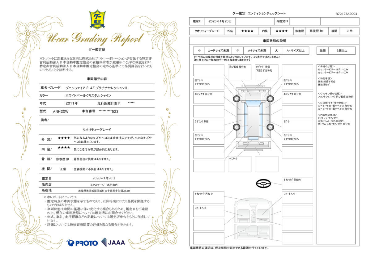 車両状態(ヴェルファイア 2.4Z プラチナセレクションII)