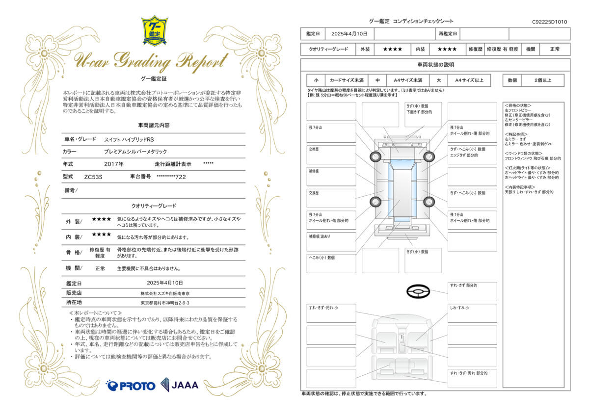 | 車両状態評価書 | ※クリックすると開きます![]() |