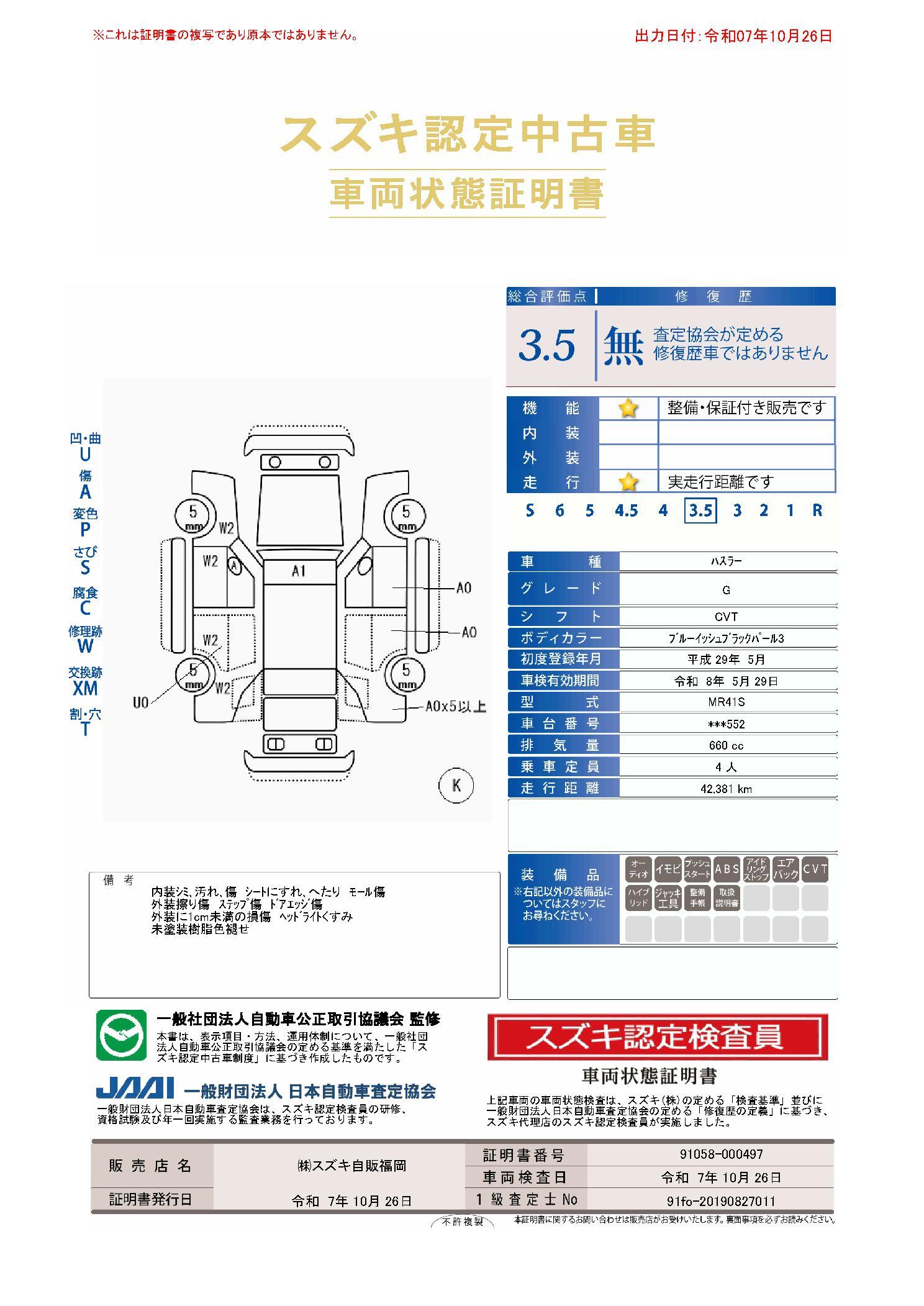 車両保証(ハスラー G:(株)スズキ自販福岡 スズキアリーナ飯塚穂波)