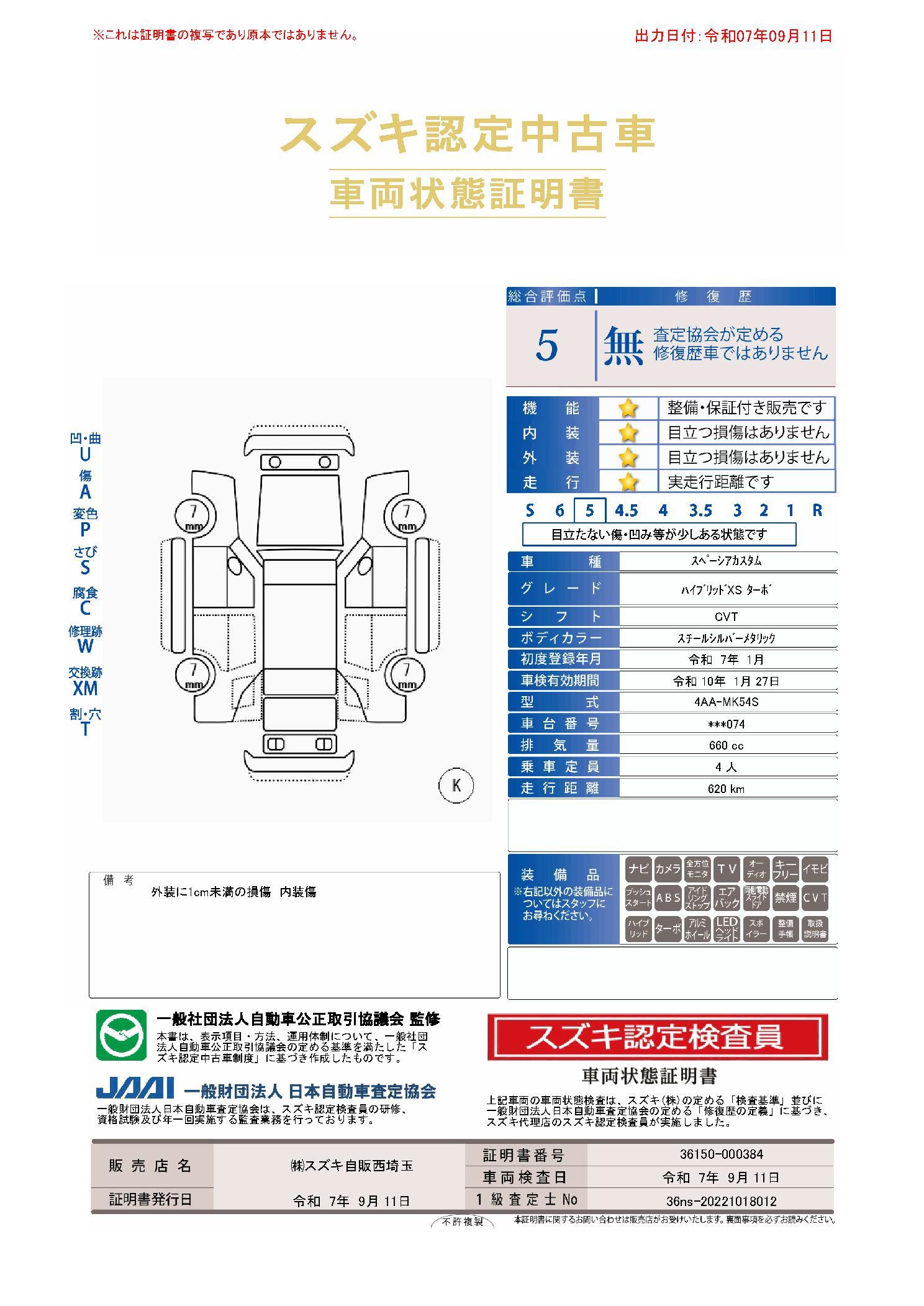 車両状態評価書 | ※クリックすると開きます![]() |