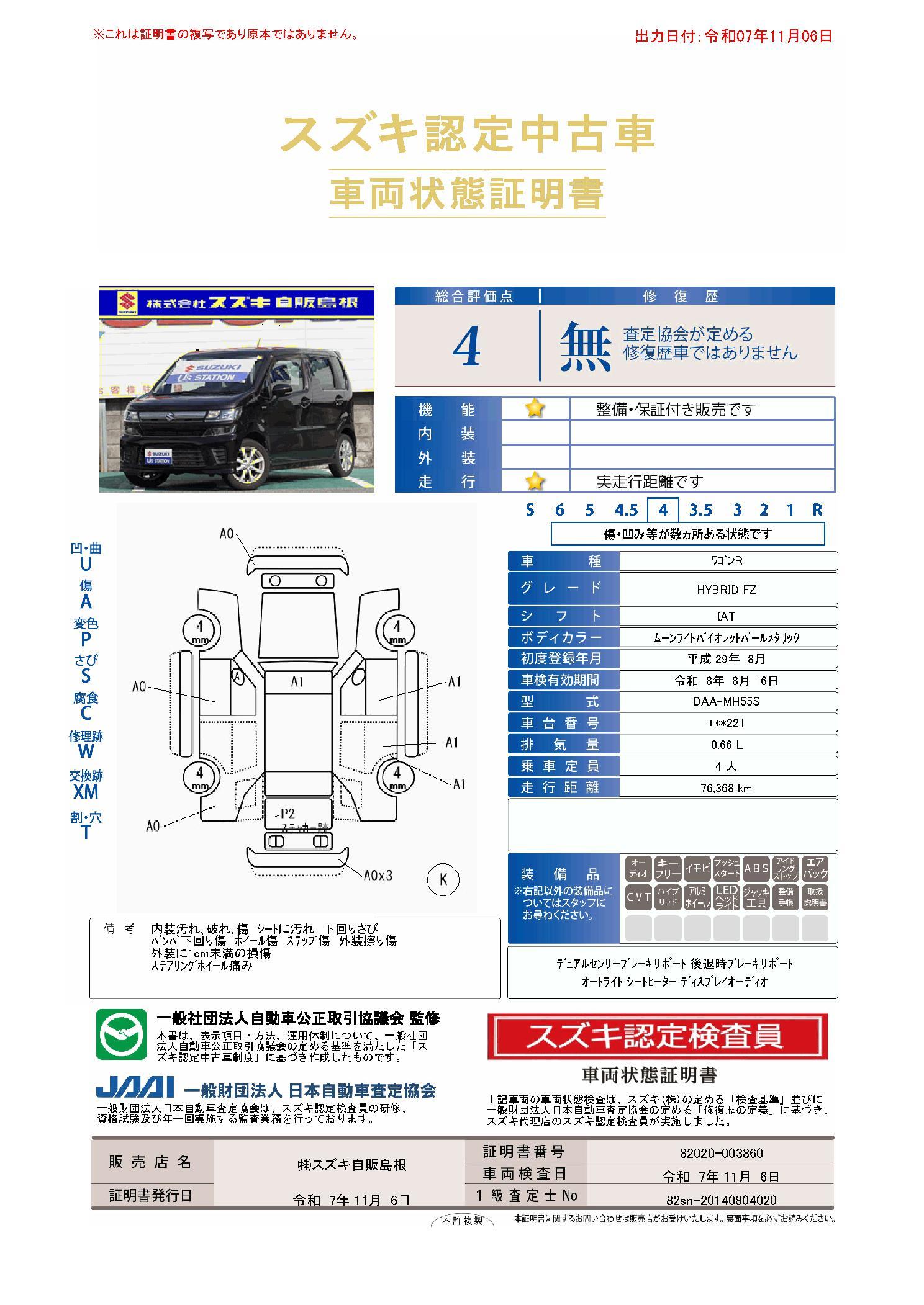 車両保証(ワゴンR ハイブリッドFZ:(株)スズキ自販島根 スズキアリーナ浜田)