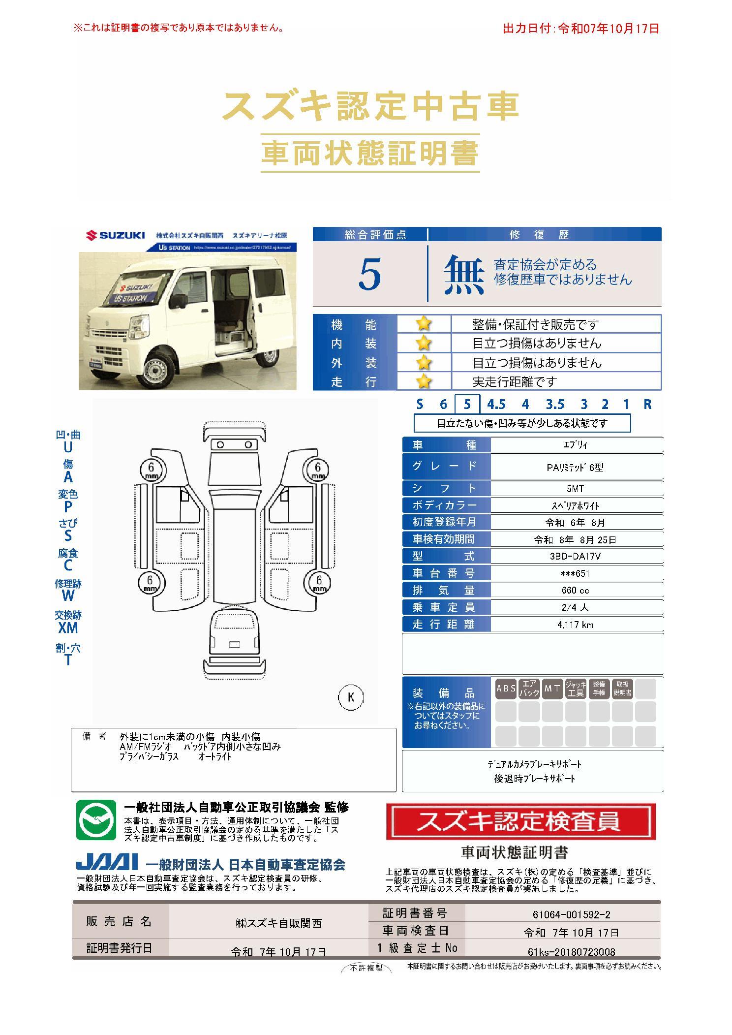 車両保証(エブリイ PAリミテッド:(株)スズキ自販関西 スズキアリーナ松原)