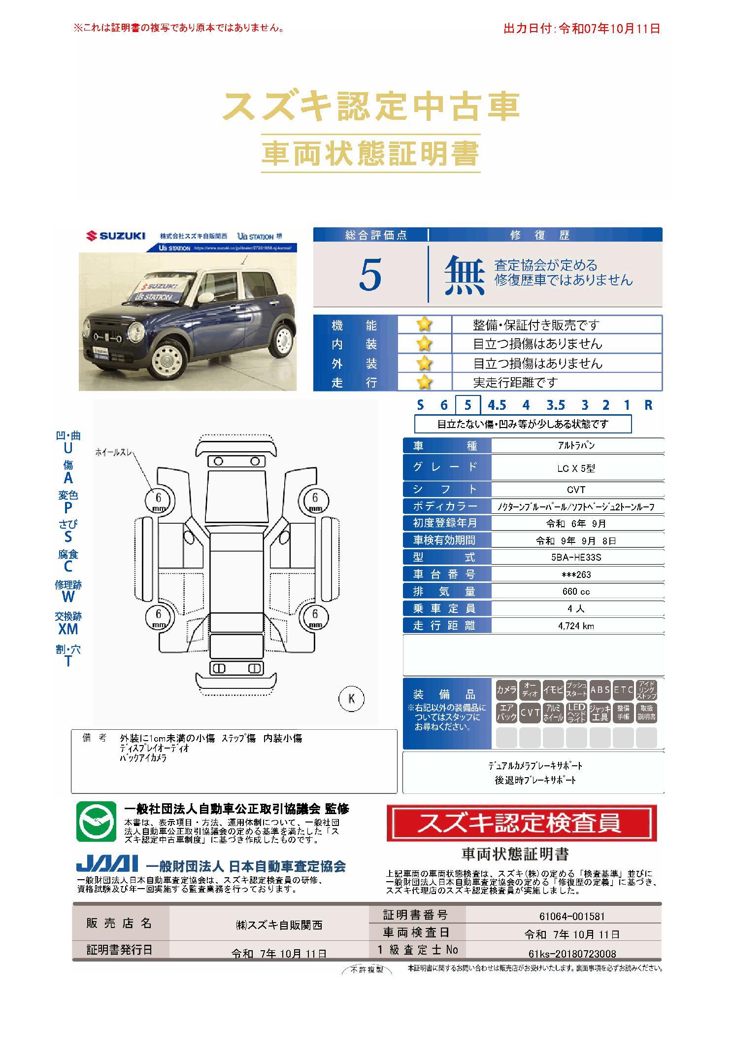 車両保証(アルトラパンLC X:(株)スズキ自販関西 堺営業所)