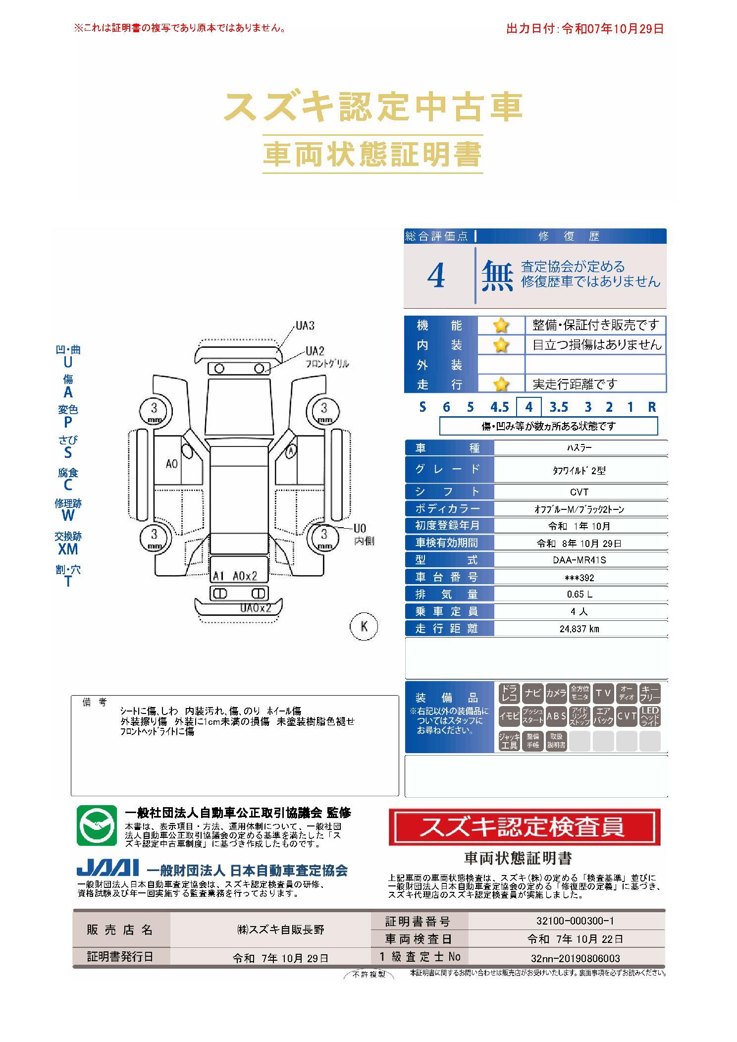 車両保証(ハスラー タフワイルド:(株)スズキ自販長野 U’s STATION上田)