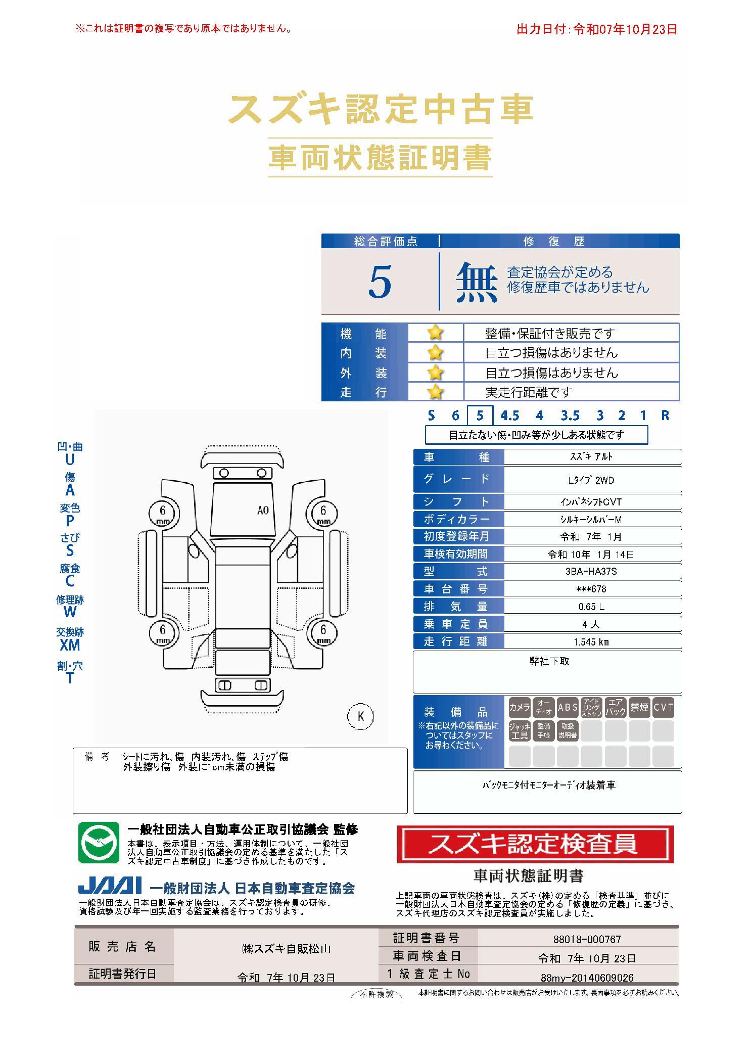 車両保証(アルト L:(株)スズキ自販松山 スズキアリーナ萩生)