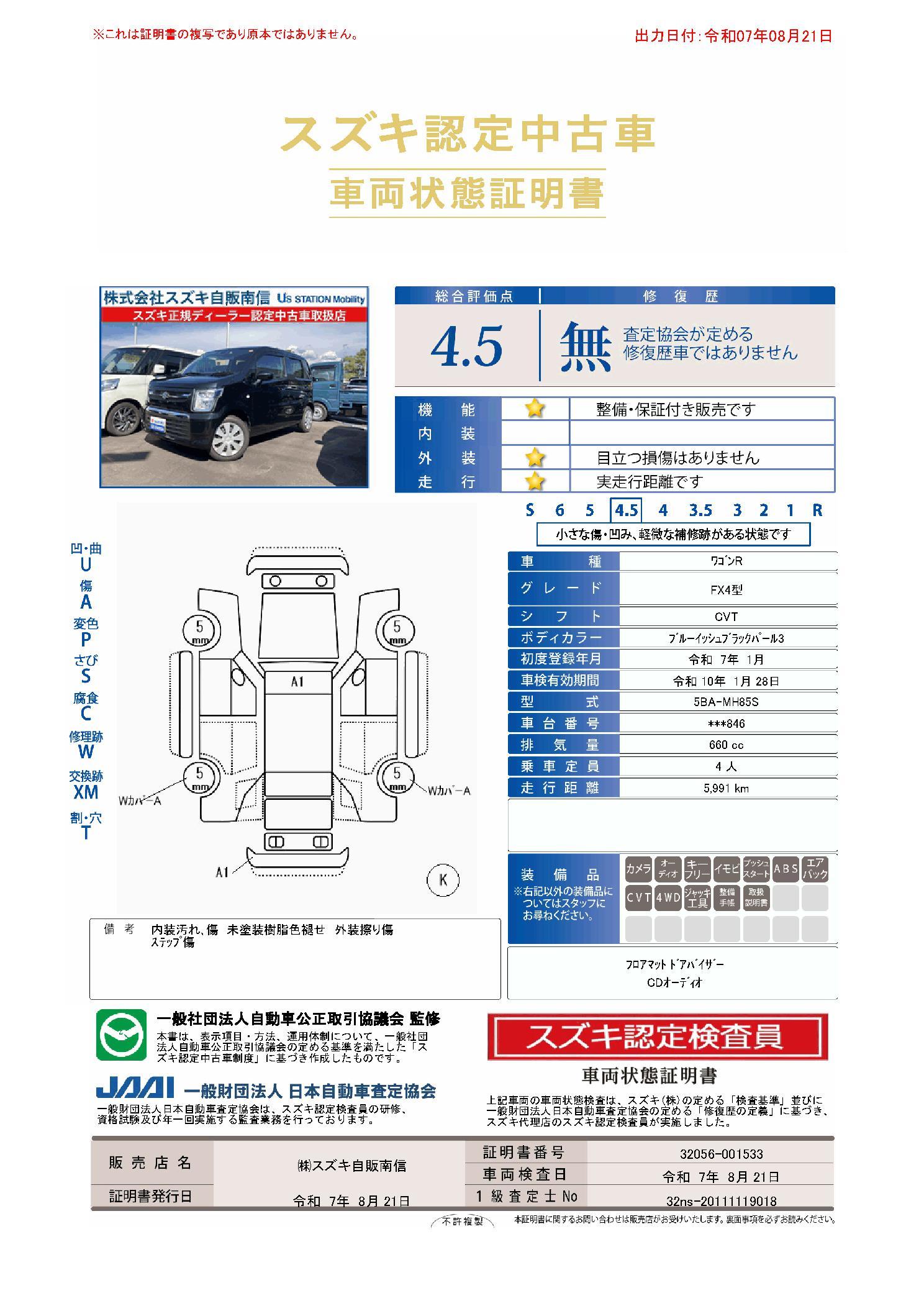 車両保証(ワゴンR FX:(株)スズキ自販長野 スズキアリーナ信州飯田)