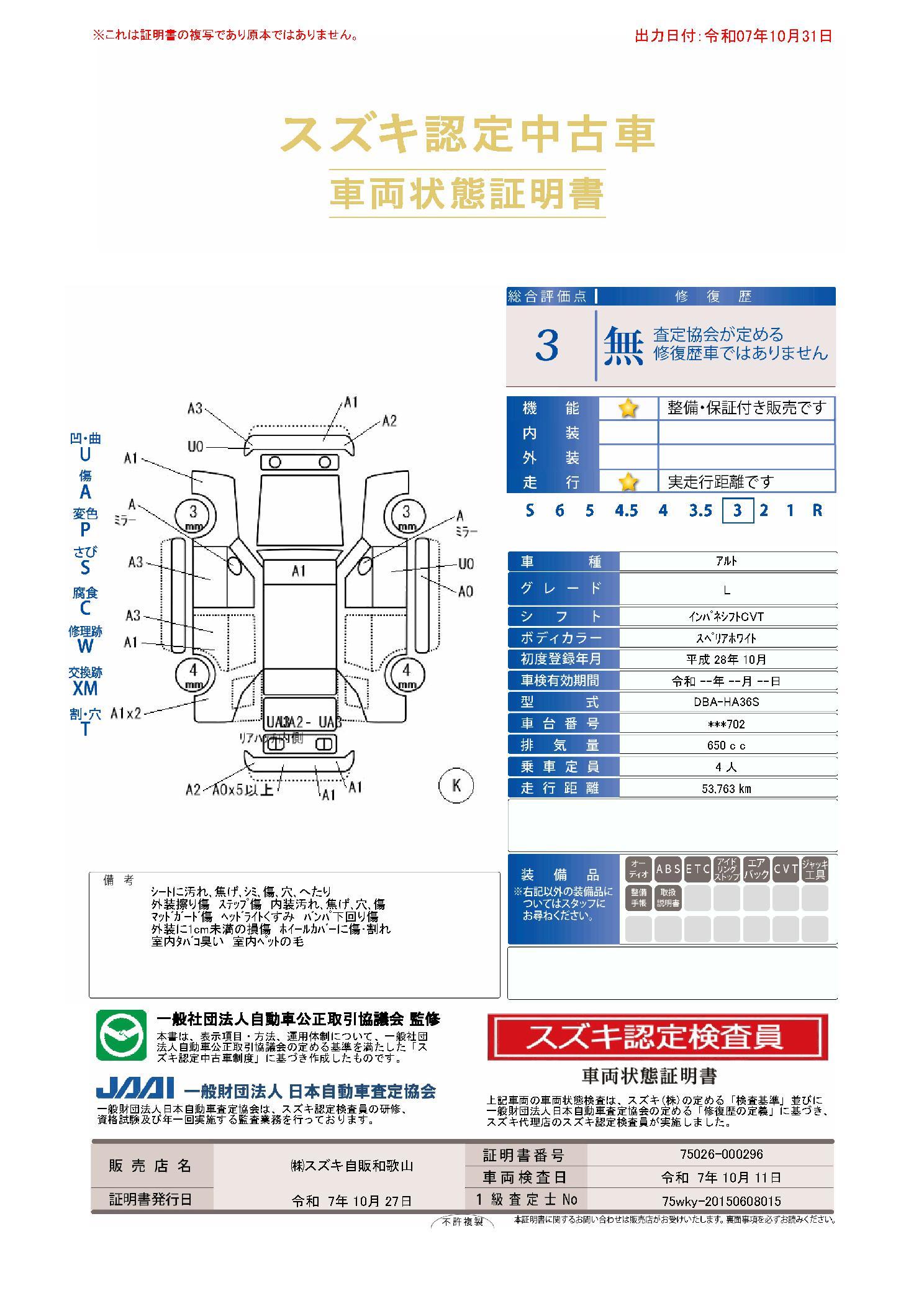 車両保証(アルト L:(株)スズキ自販和歌山 スズキアリーナ有田/ U’s STATION有田)