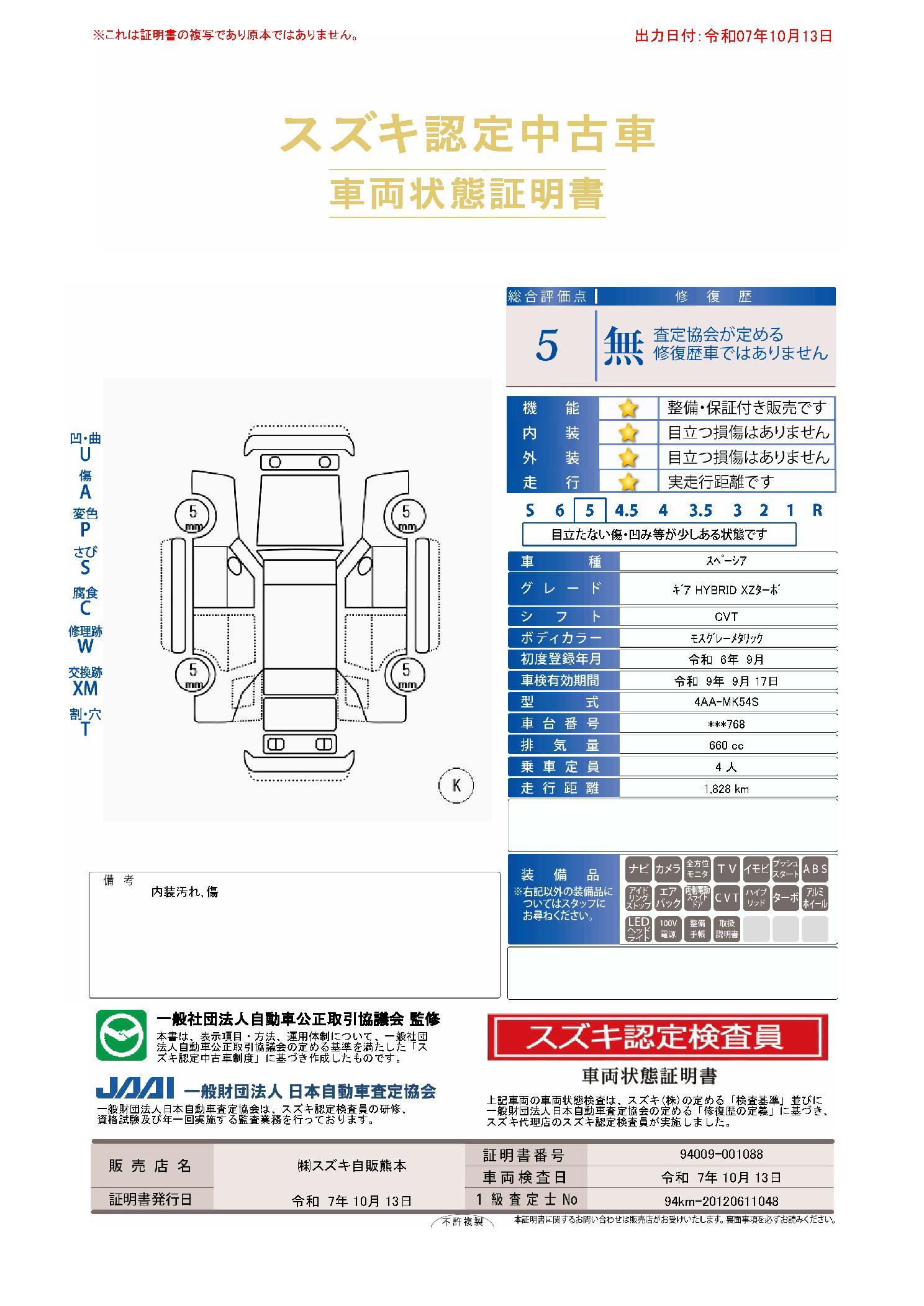 車両保証(スペーシア その他/独自仕様/表記なし:(株)スズキ自販熊本 U’s STATION近見)