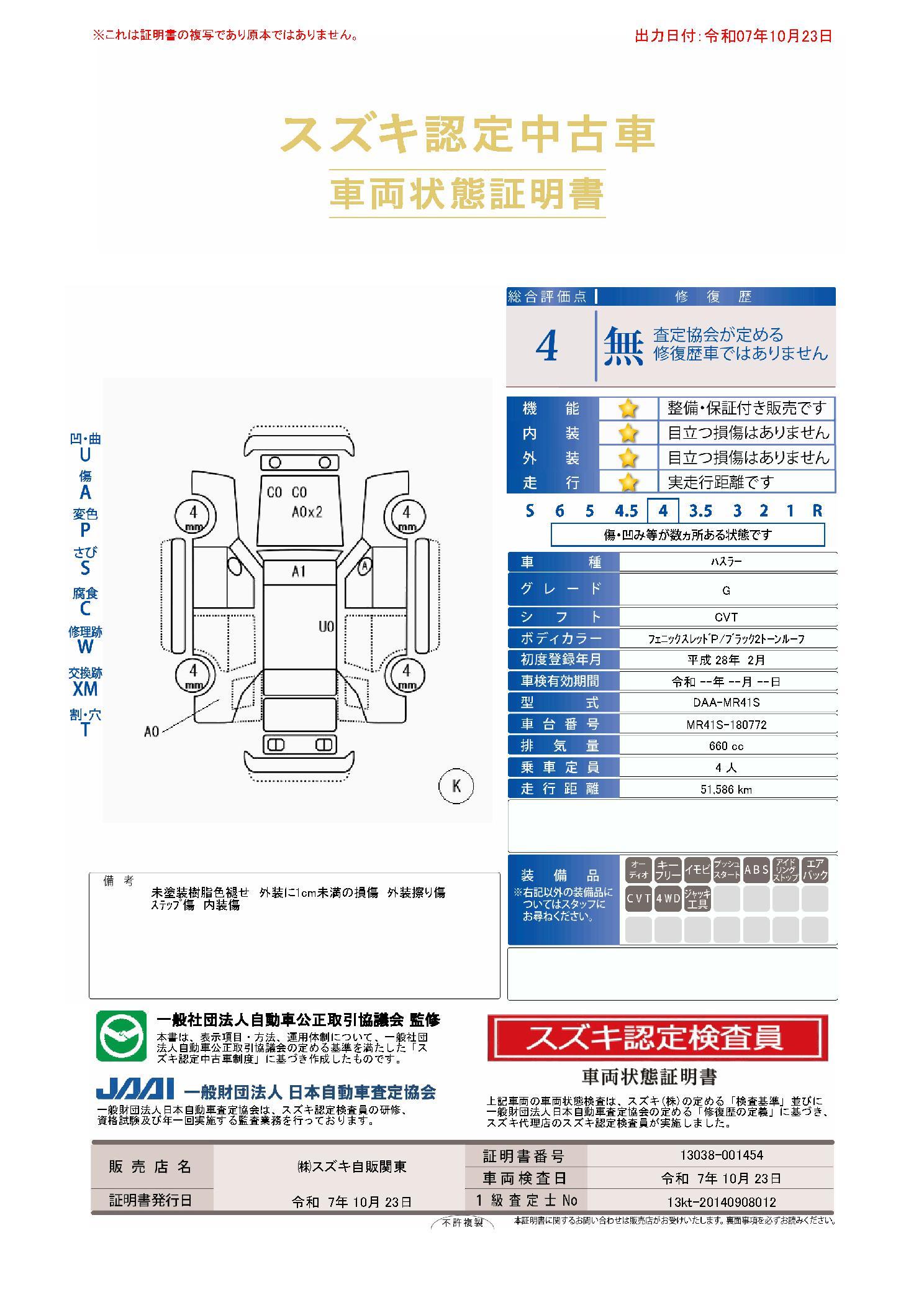 | 車両状態評価書 | ※クリックすると開きます![]() |