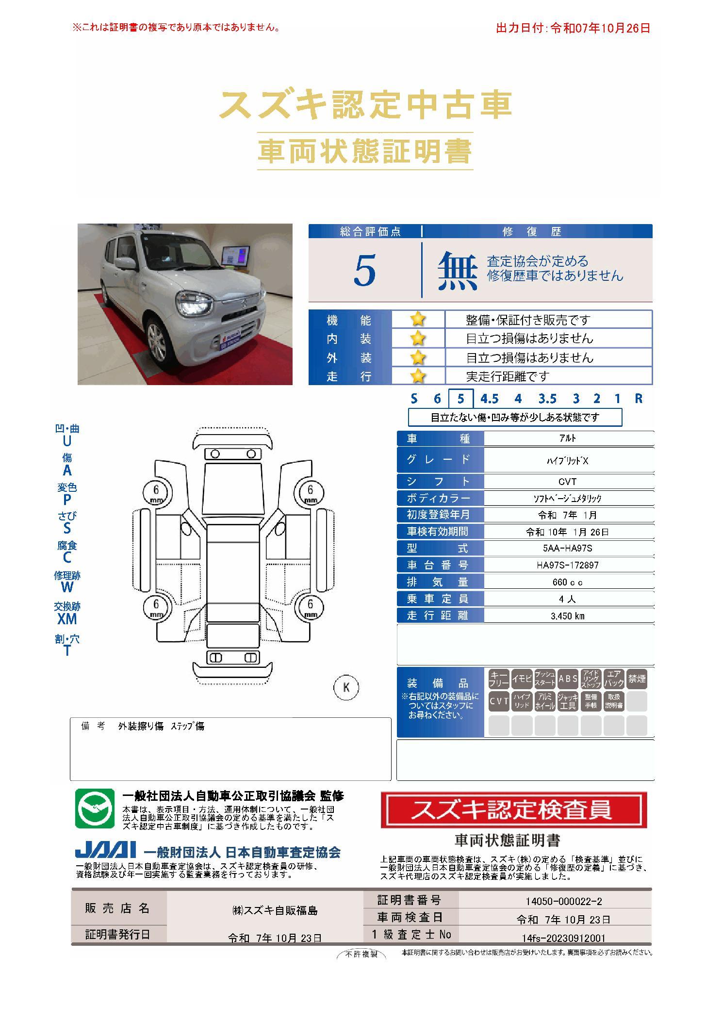 | 車両状態評価書 | ※クリックすると開きます![]() |