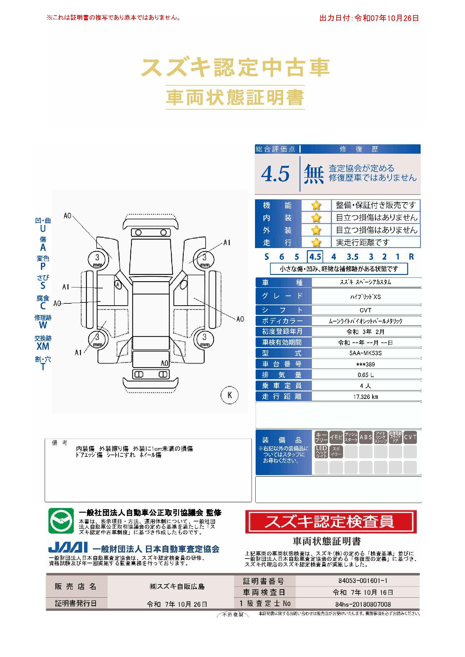 | 車両状態評価書 | ※クリックすると開きます![]() |