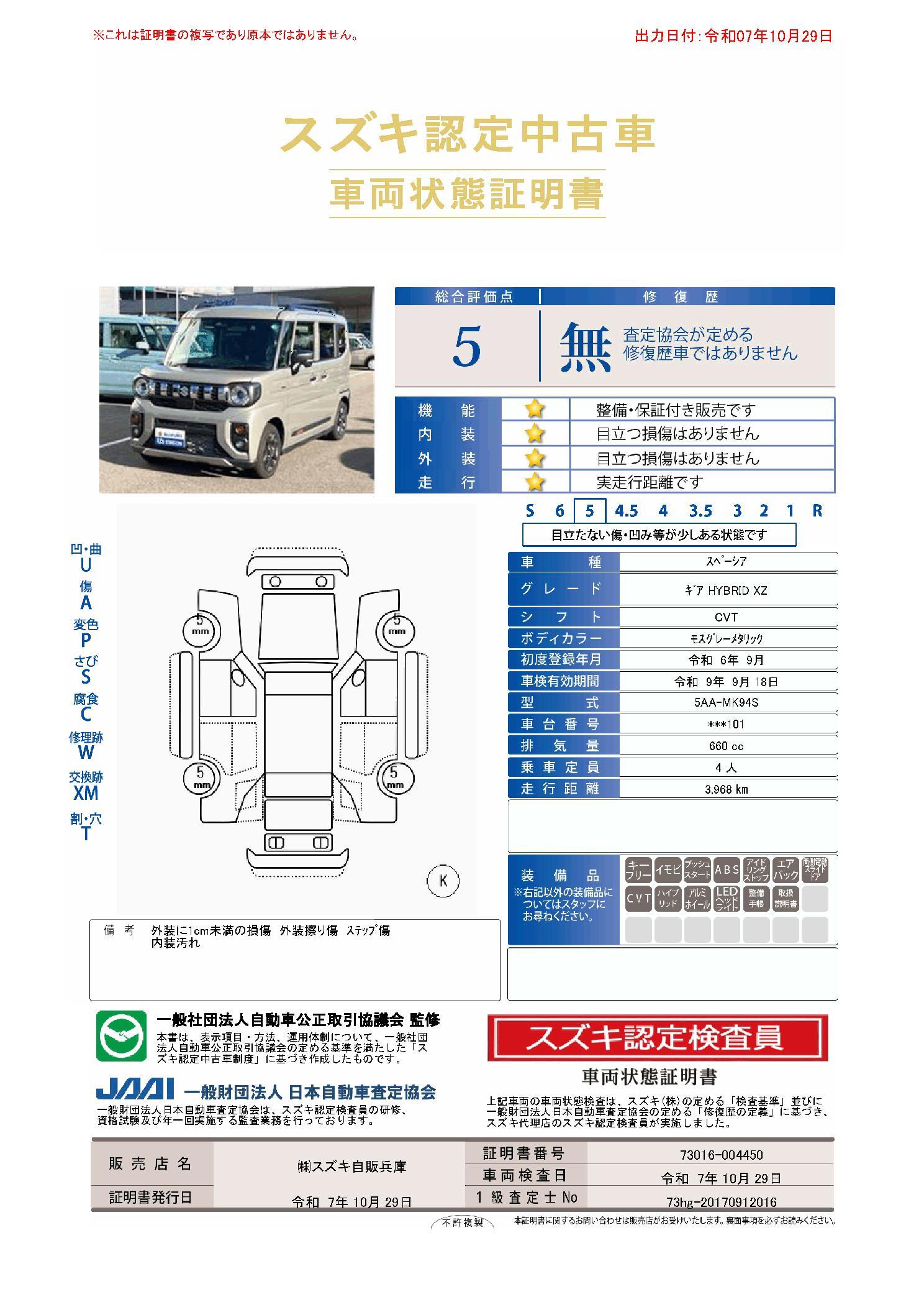 | 車両状態評価書 | ※クリックすると開きます![]() |