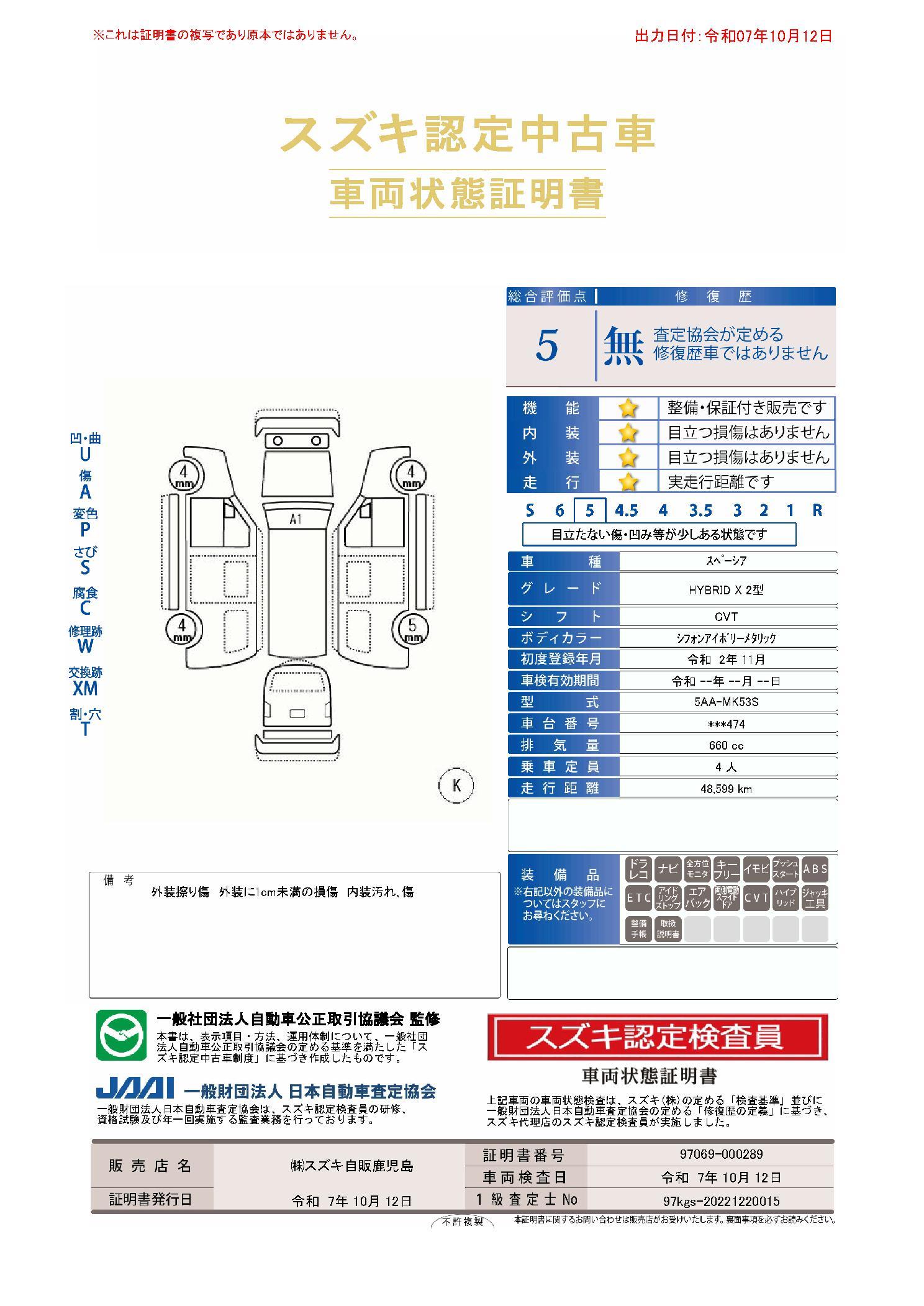 車両保証(スペーシア ハイブリッドX:株式会社 スズキ自販鹿児島 大隅営業所)