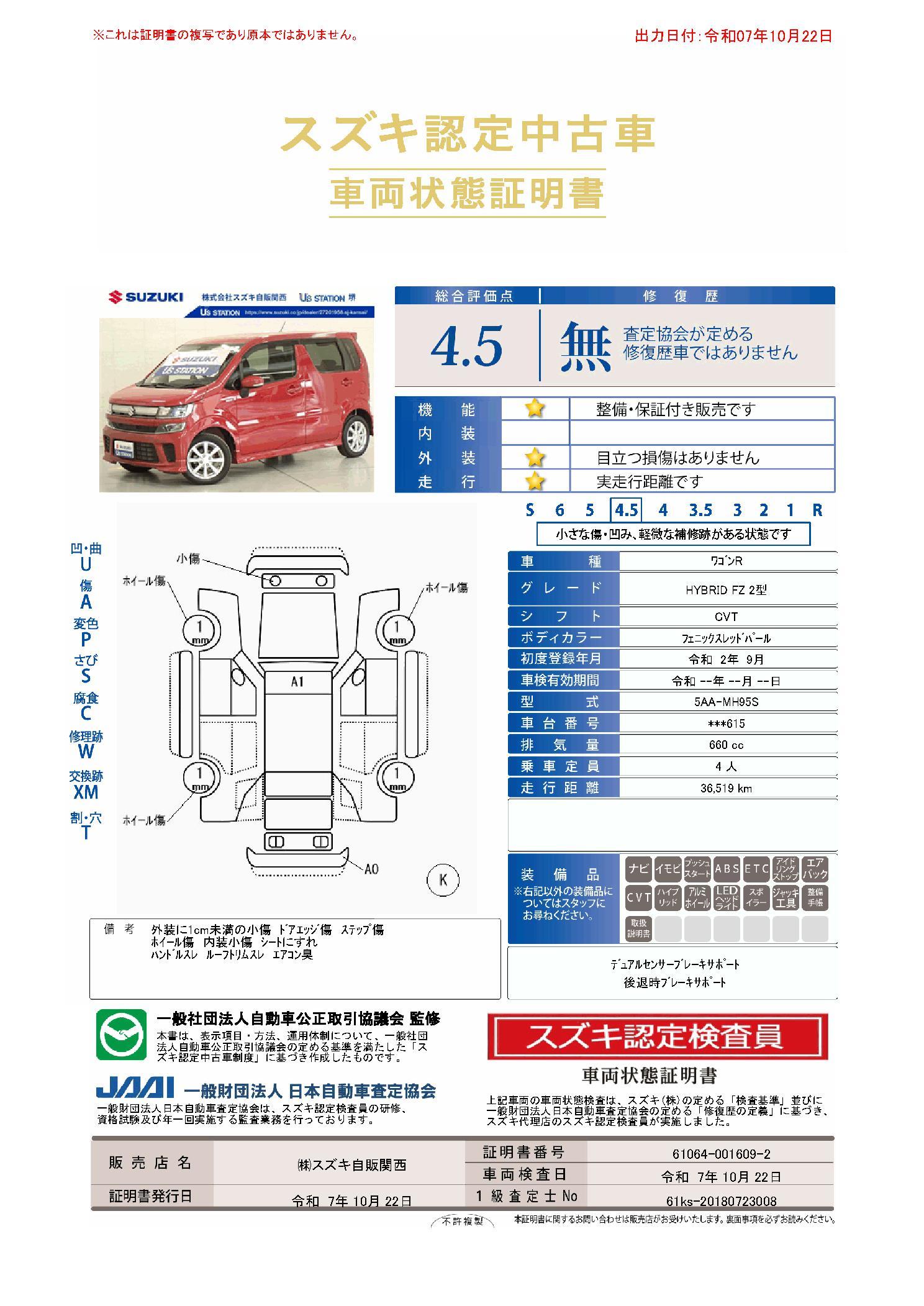 車両保証(ワゴンR ハイブリッドFZ:(株)スズキ自販関西 堺営業所)