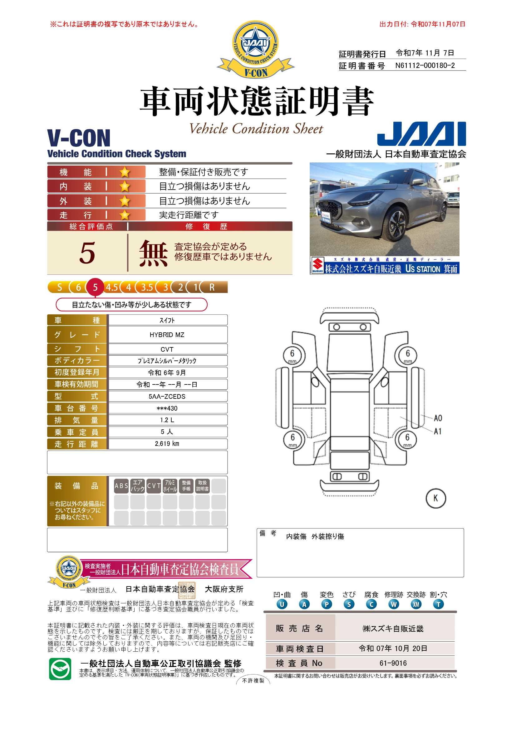 車両保証(スイフト ハイブリッドMZ:(株)スズキ自販近畿 箕面センター)