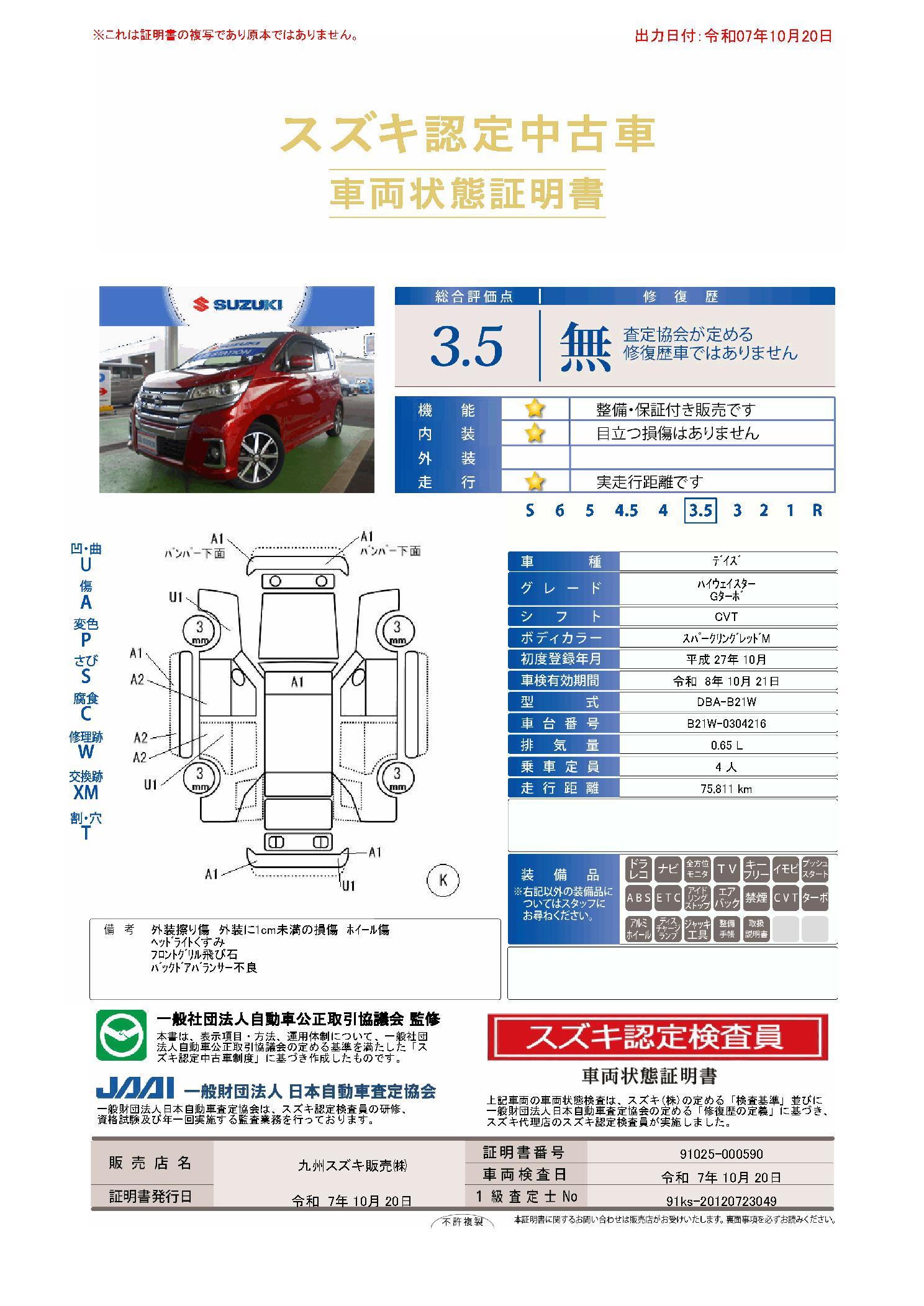車両保証(デイズ ハイウェイスター Gターボ:九州スズキ販売(株)スズキアリーナ羽犬塚)