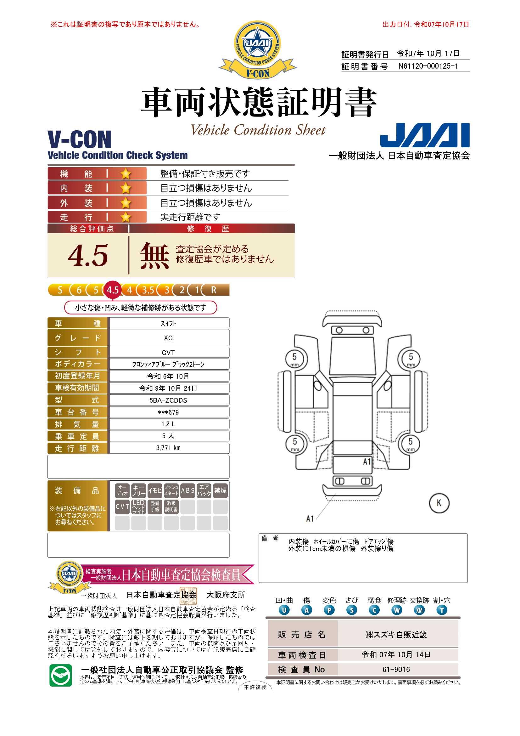 車両保証(スイフト XG:(株)スズキ自販近畿 U’s STATION八尾)