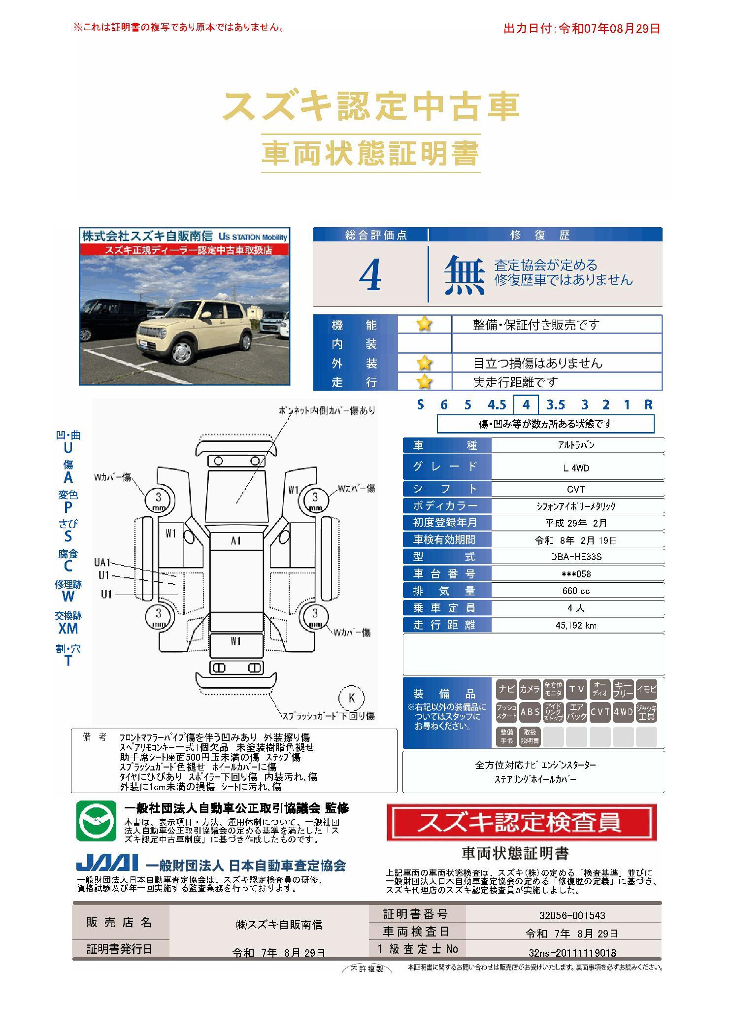 車両保証(アルトラパン L:(株)スズキ自販長野 スズキアリーナ信州飯田)
