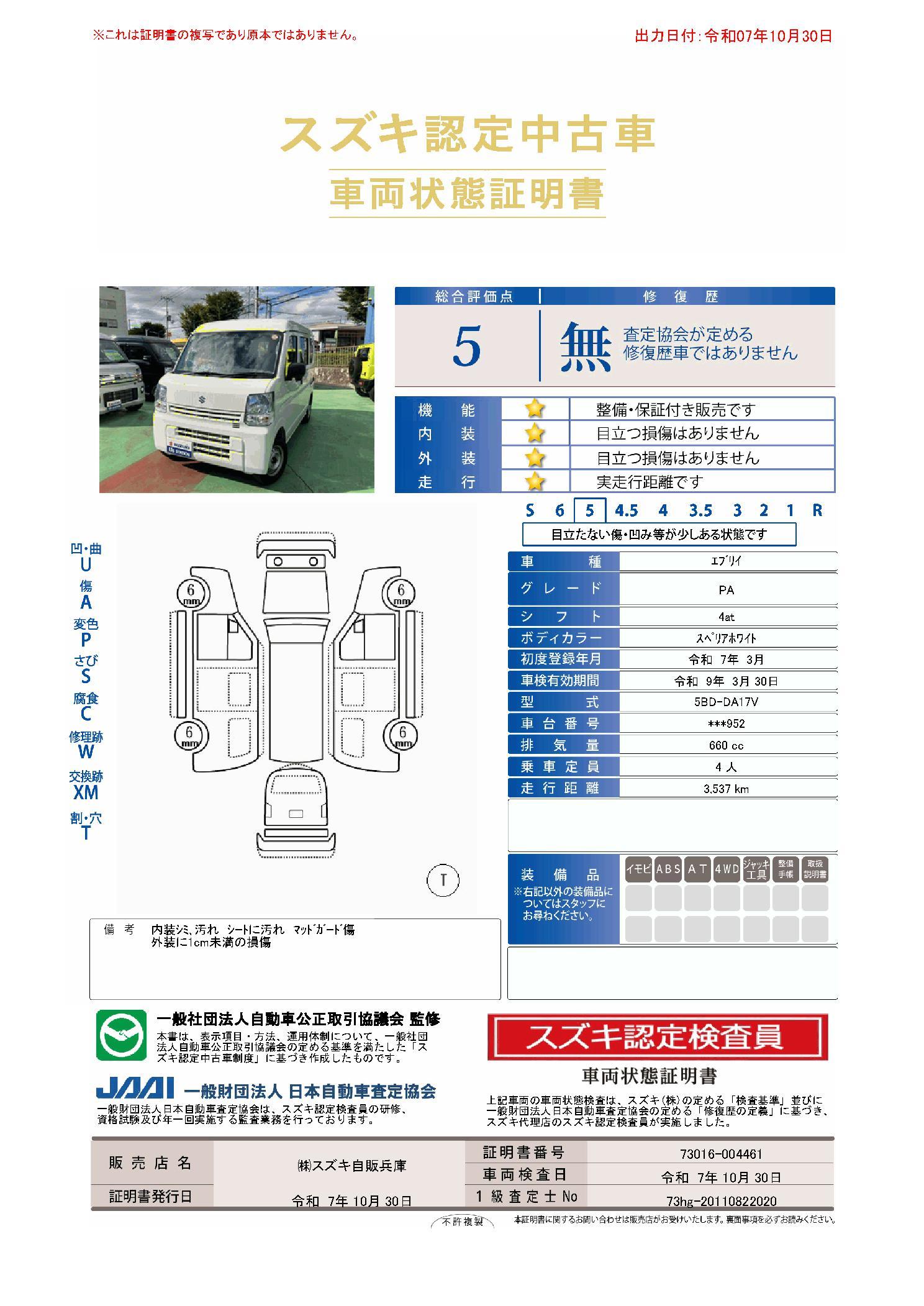 車両保証(エブリイ PA:(株)スズキ自販兵庫 スズキアリーナ神戸明石)