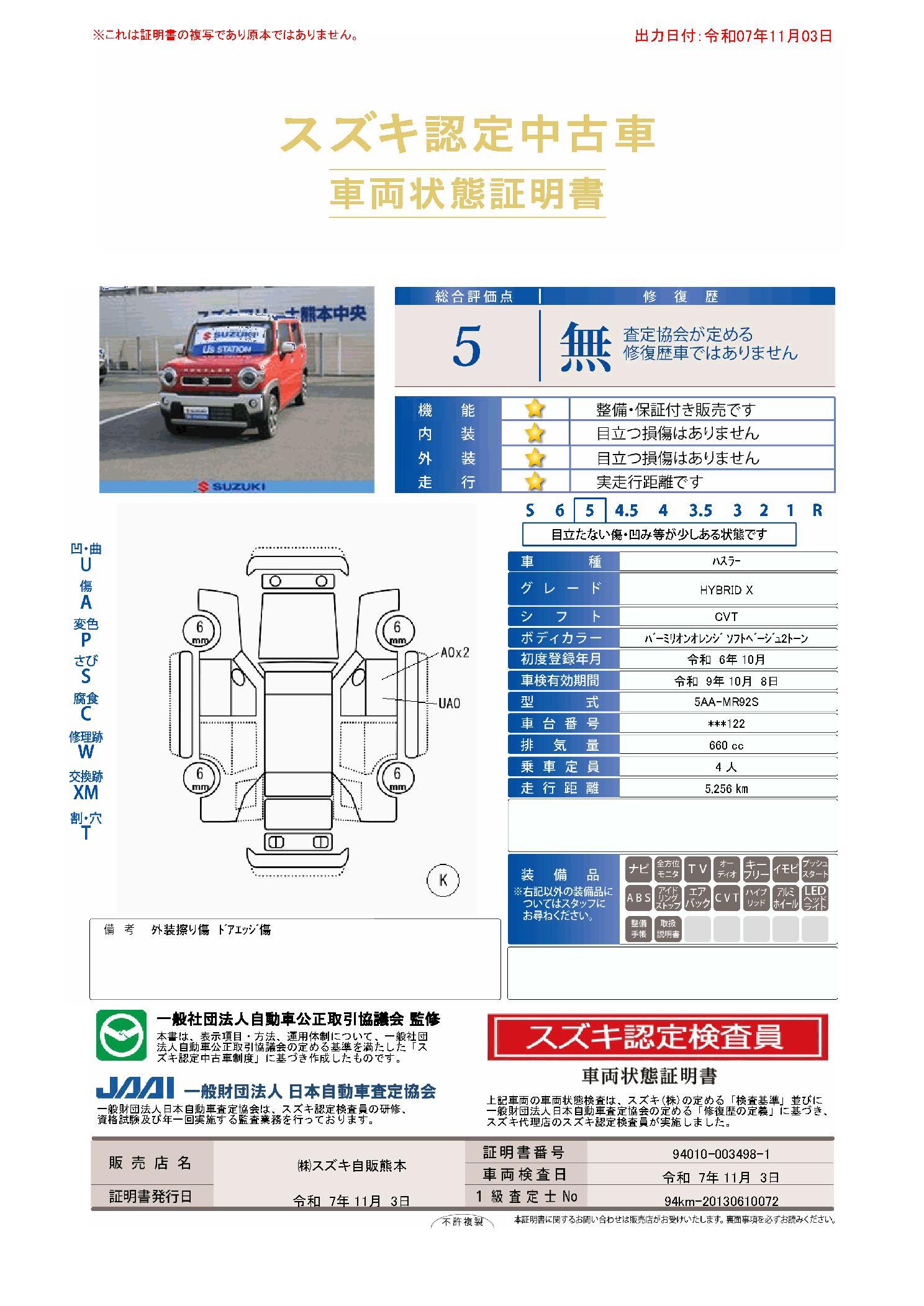 車両保証(ハスラー ハイブリッドX:(株)スズキ自販熊本 スズキアリーナ熊本中央)