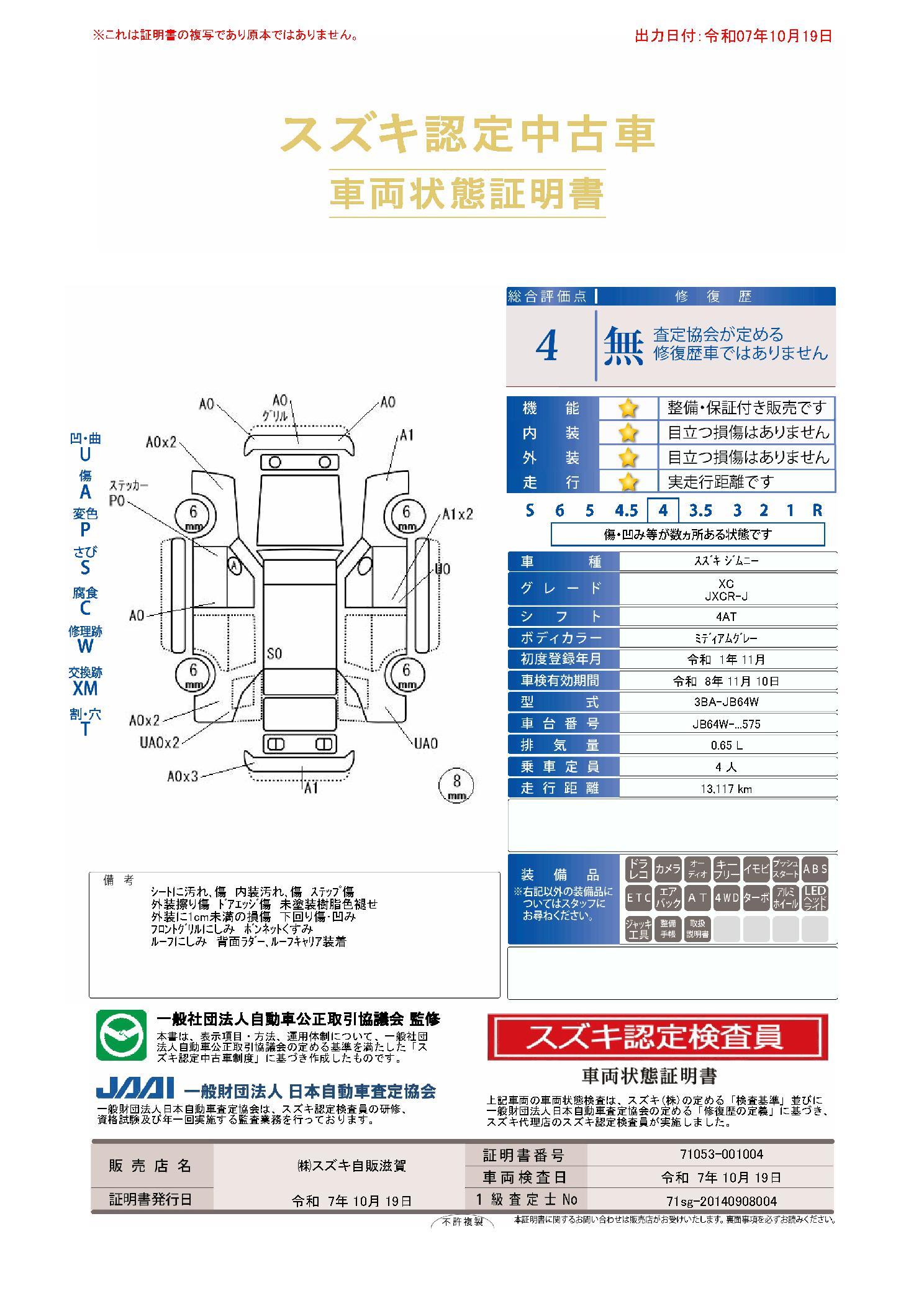 車両保証(ジムニー XC:(株)スズキ自販滋賀 U’s STATION大津)