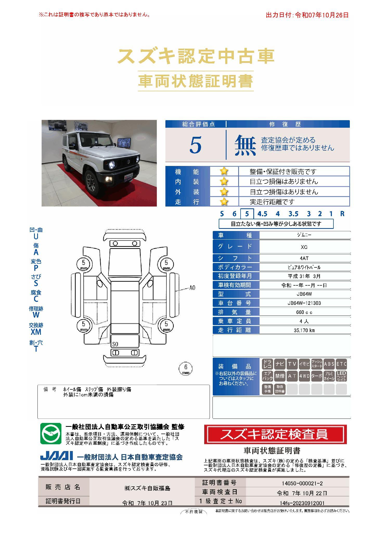 車両保証(ジムニー XC:(株)スズキ自販福島 スズキアリーナ自由ヶ丘)