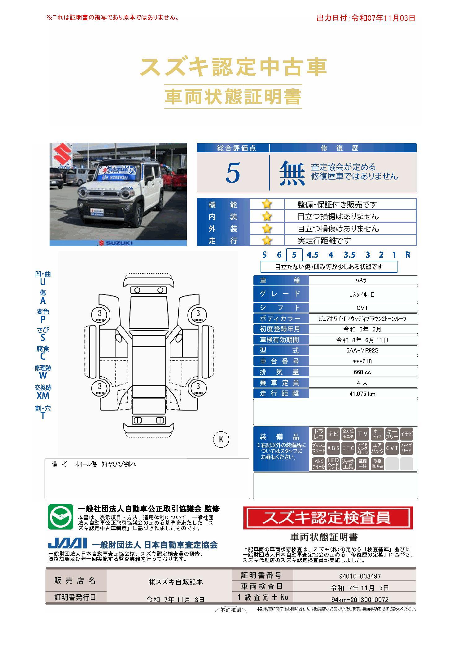 車両保証(ハスラー JスタイルII:(株)スズキ自販熊本 スズキアリーナ熊本中央)