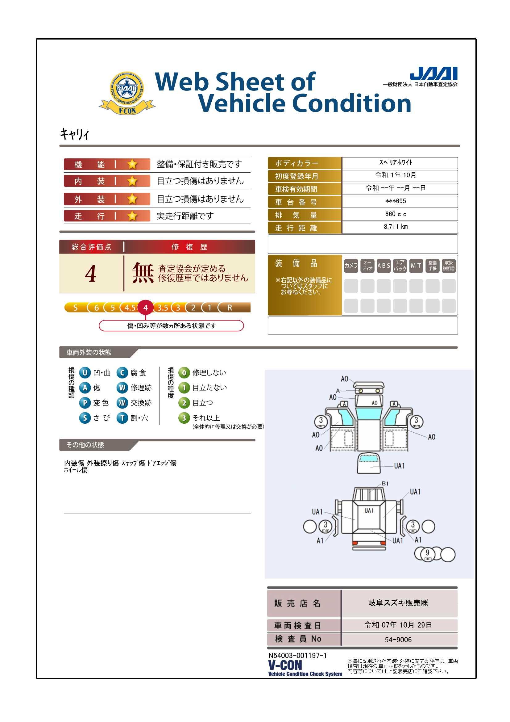 | 車両状態評価書 | ※クリックすると開きます  | ||