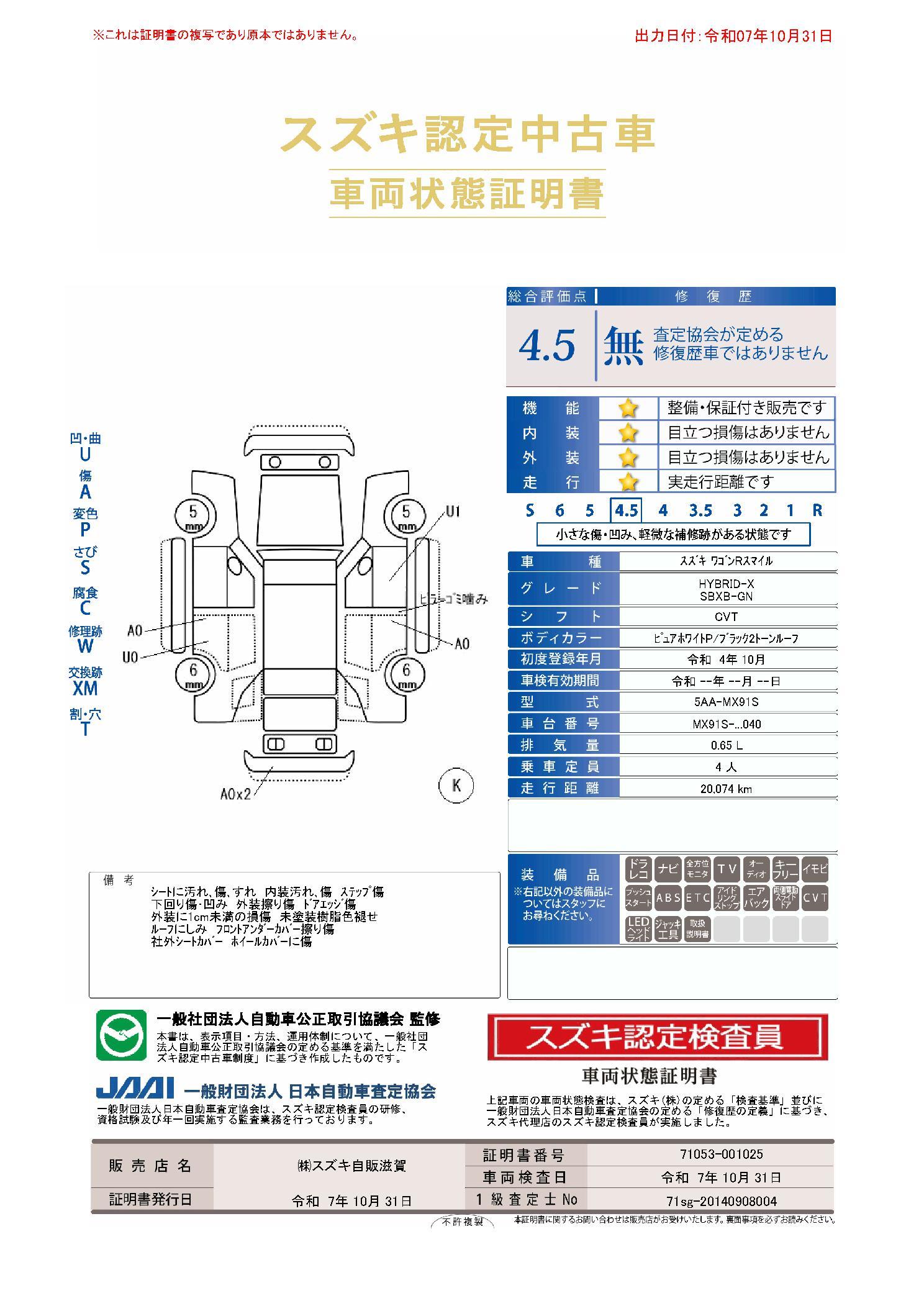 | 車両状態評価書 | ※クリックすると開きます![]() |