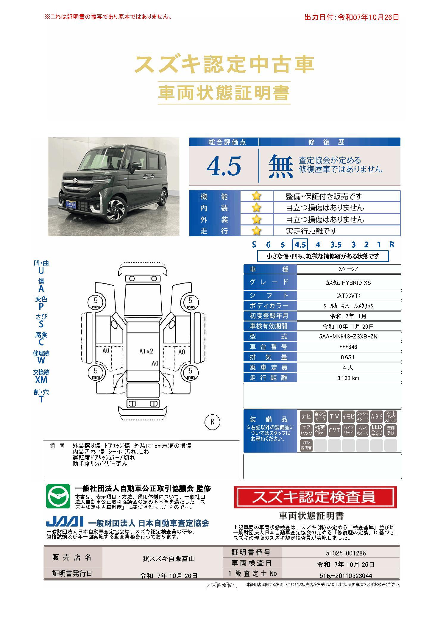 | 車両状態評価書 | ※クリックすると開きます![]() |