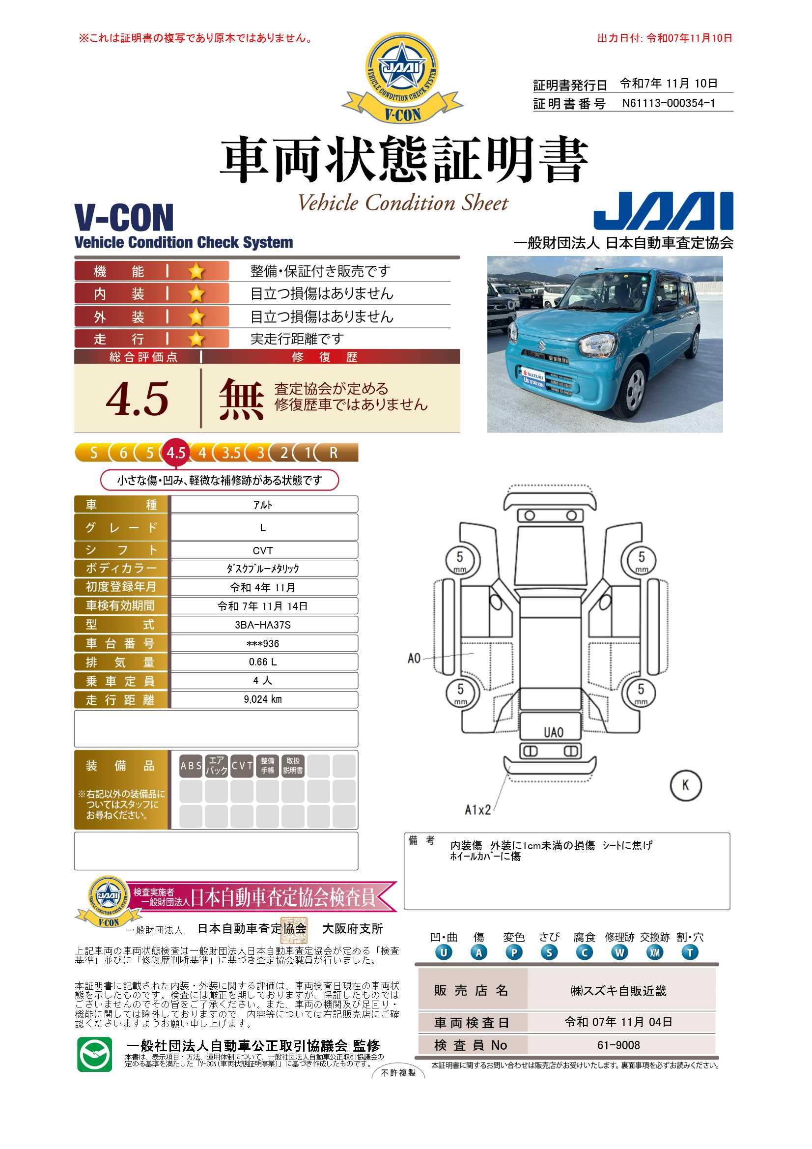 | 車両状態評価書 | ※クリックすると開きます![]() |