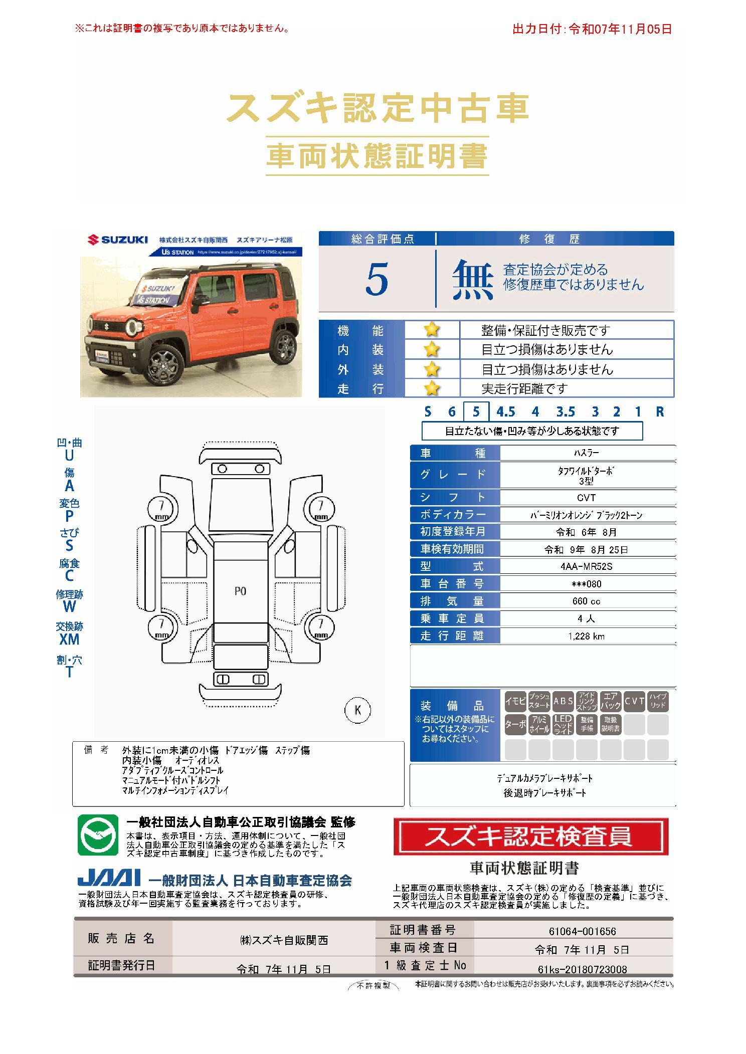 | 車両状態評価書 | ※クリックすると開きます![]() |