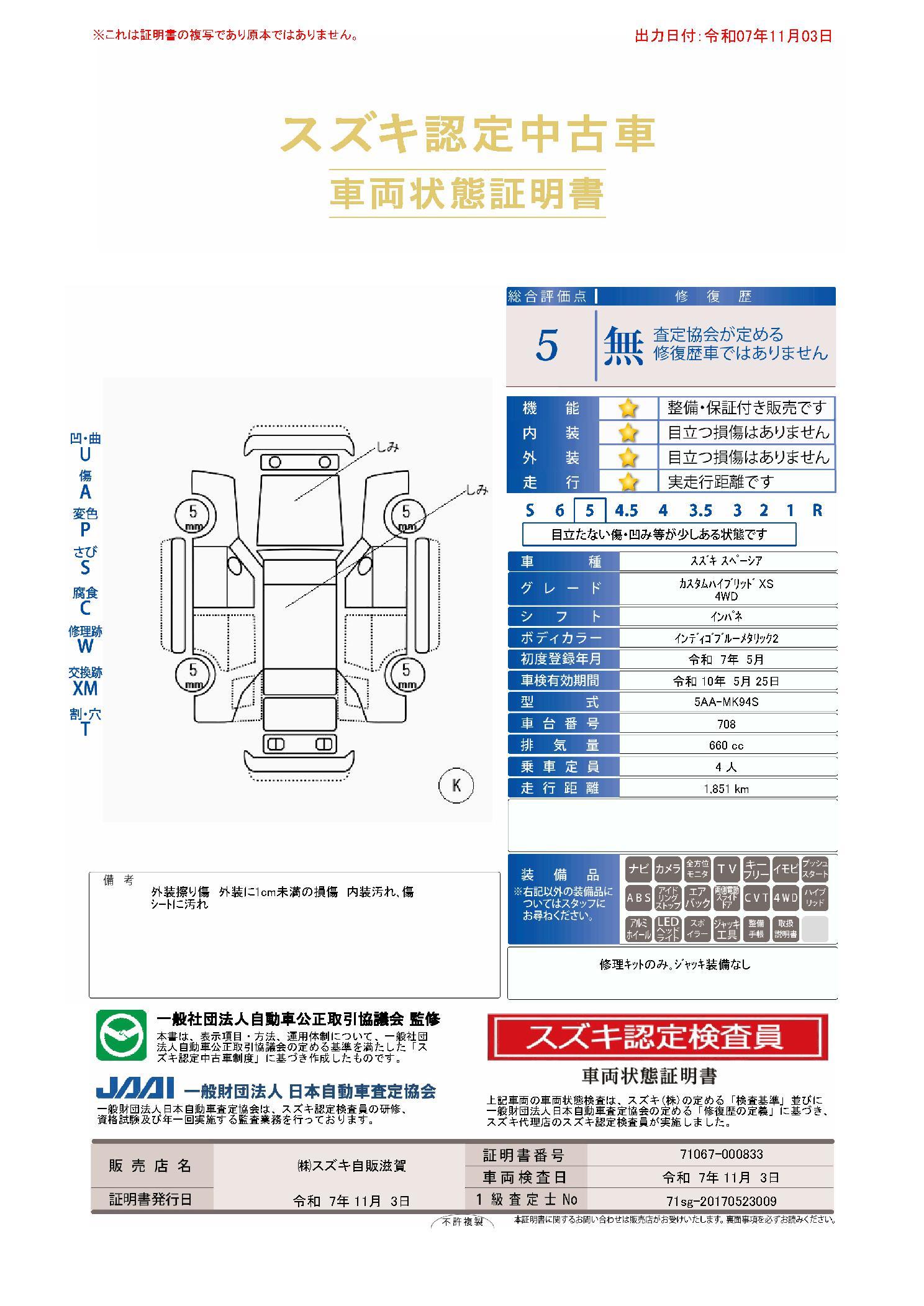 | 車両状態評価書 | ※クリックすると開きます![]() |