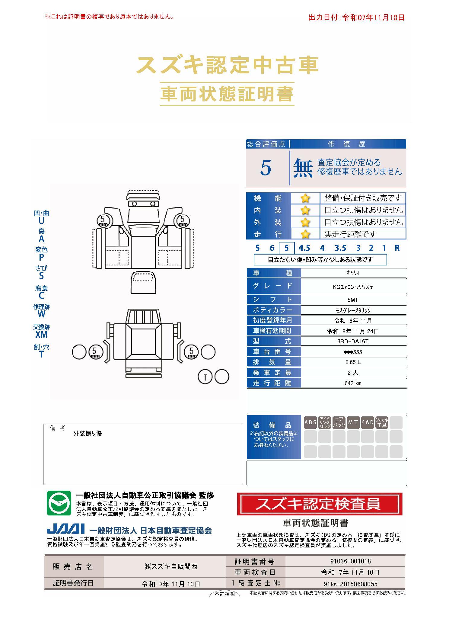 | 車両状態評価書 | ※クリックすると開きます![]() |