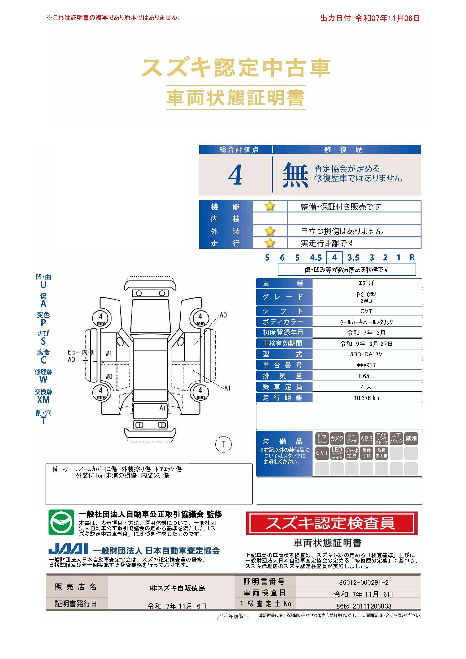 | 車両状態評価書 | ※クリックすると開きます![]() |