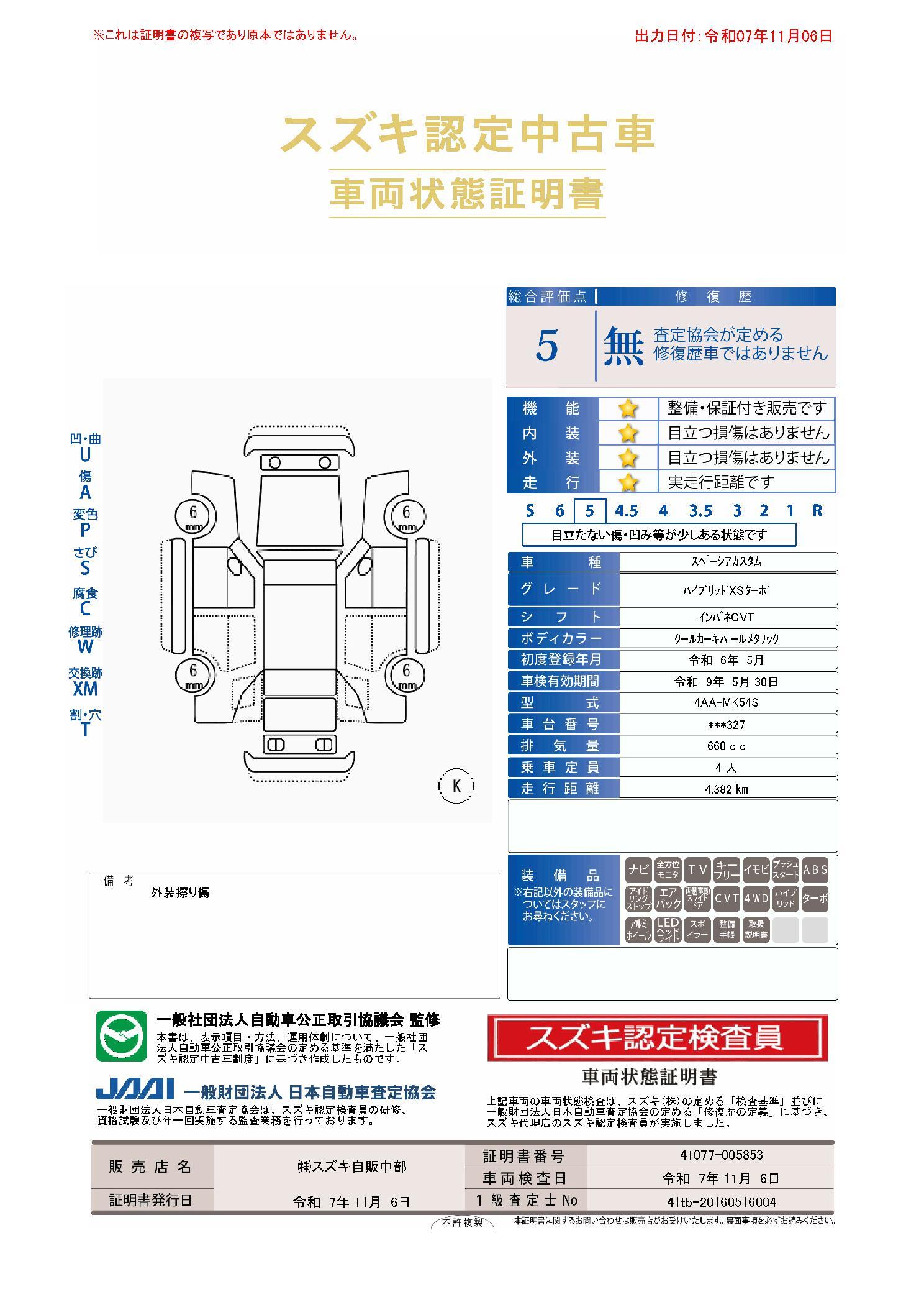 車両保証(スペーシアカスタム ハイブリッドXSターボ:(株)スズキ自販中部 U’sSTATION一宮)
