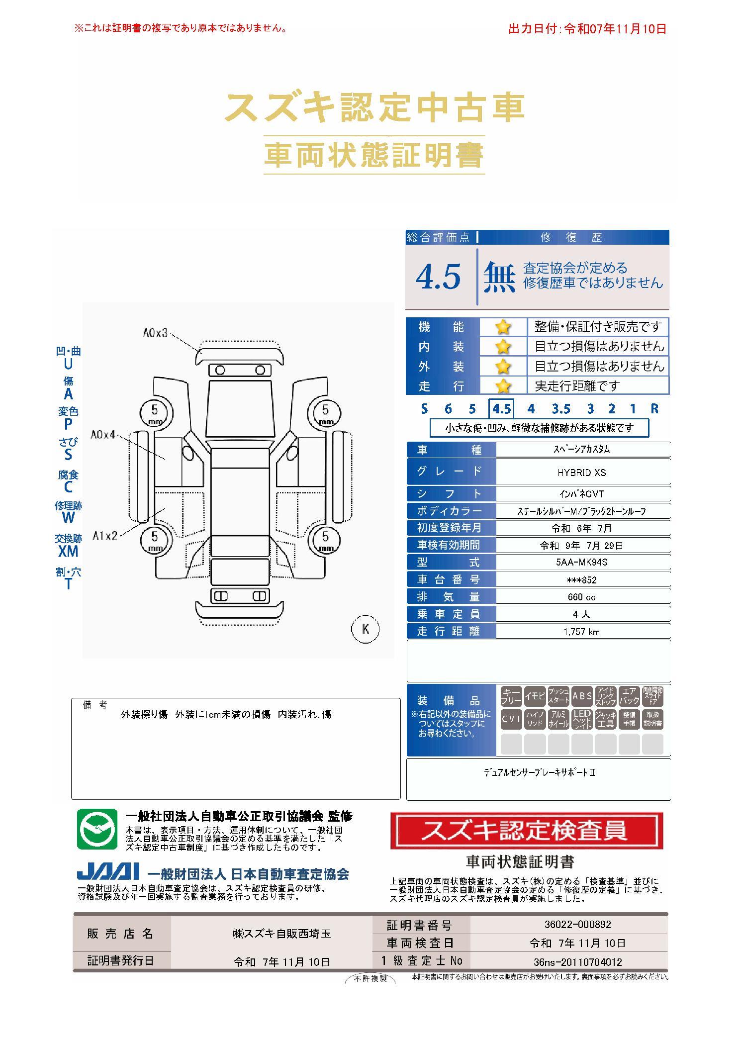 | 車両状態評価書 | ※クリックすると開きます![]() |