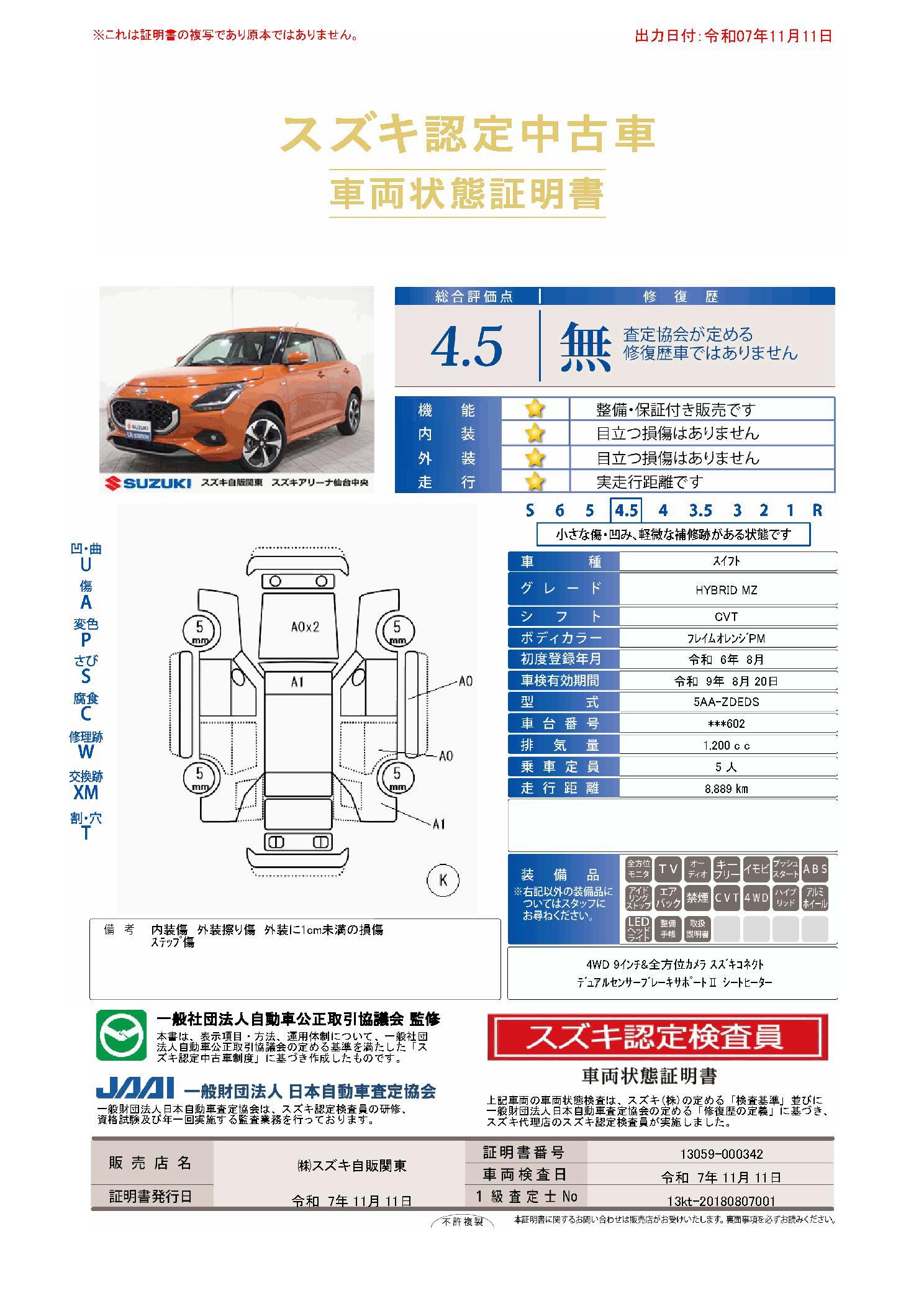 車両保証(スイフト ハイブリッドMZ:(株)スズキ自販関東 スズキアリーナ仙台中央)