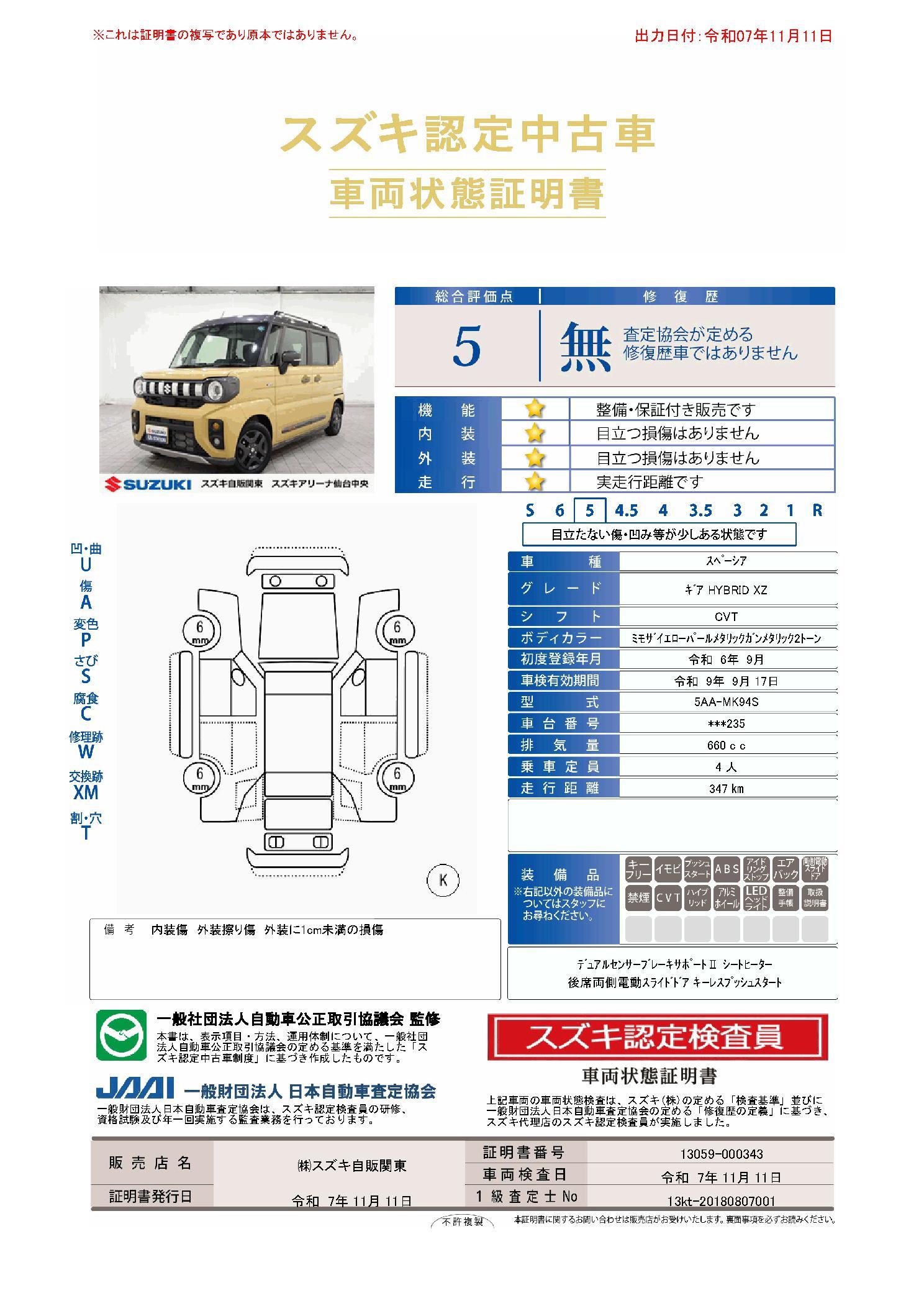 車両保証(スペーシアギア ハイブリッドXZ:(株)スズキ自販関東 スズキアリーナ仙台中央)