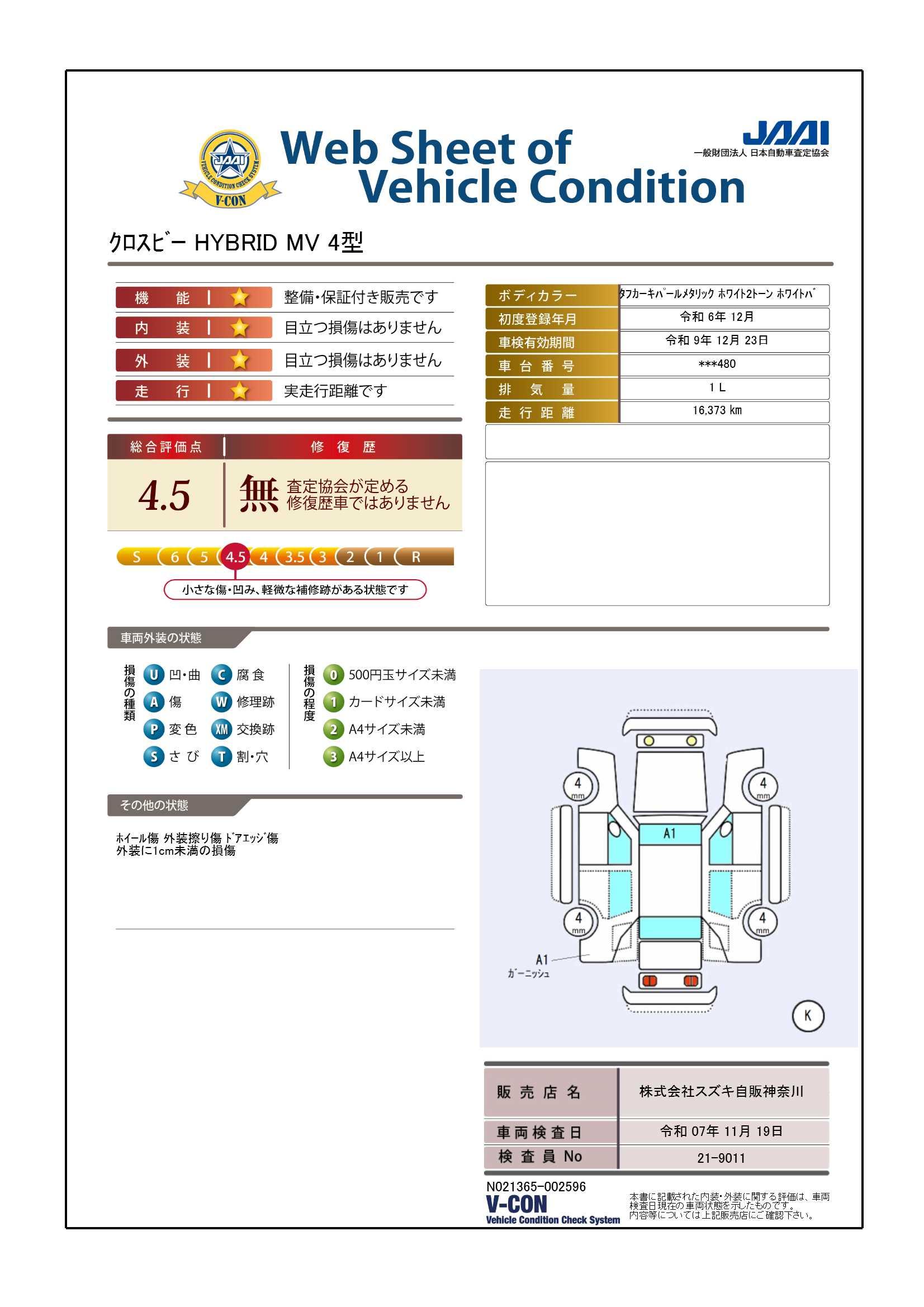 | 車両状態評価書 | ※クリックすると開きます![]() |