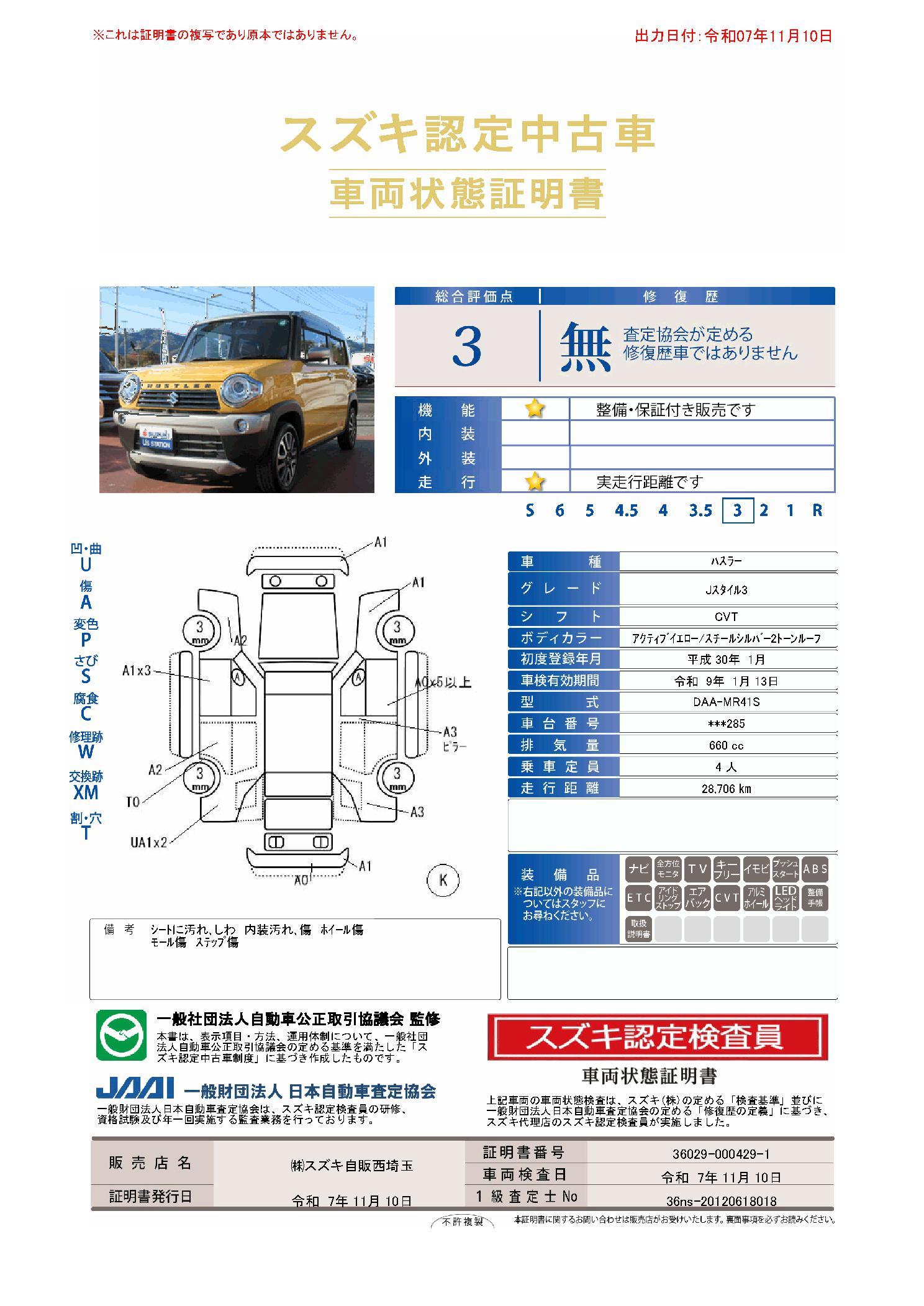 車両保証(ハスラー JスタイルIII:(株)スズキ自販西埼玉 スズキアリーナちちぶ黒谷)