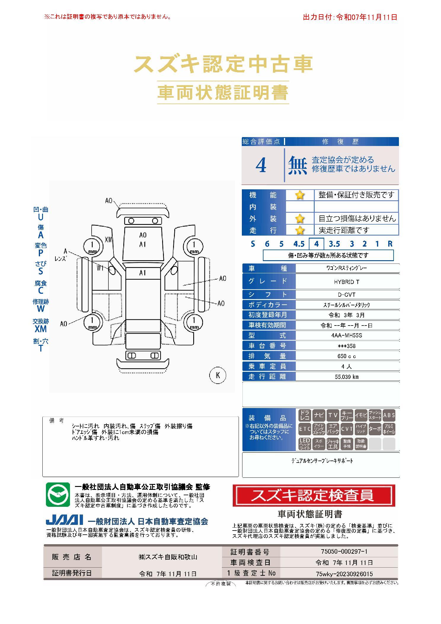 | 車両状態評価書 | ※クリックすると開きます![]() |