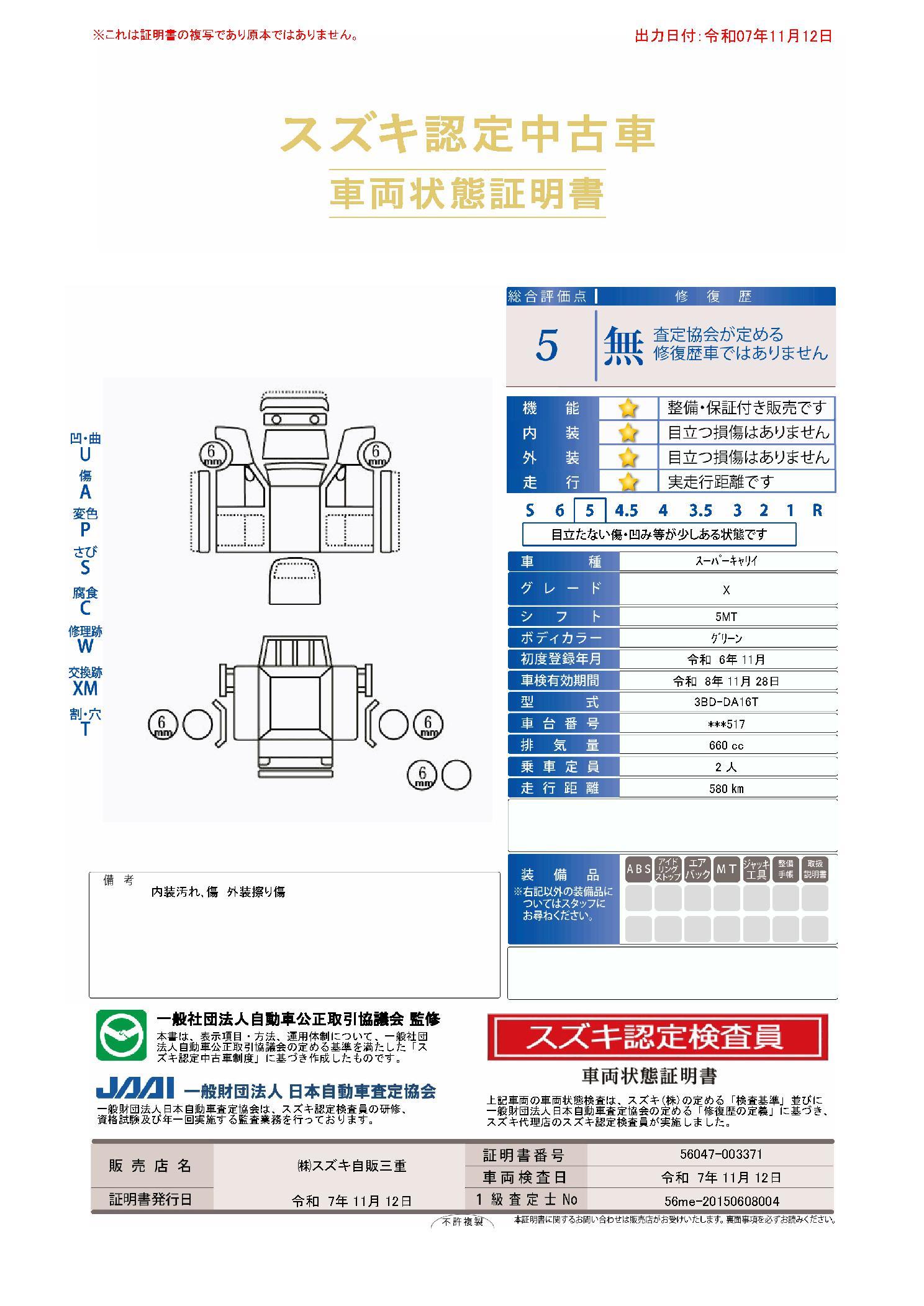 車両保証(スーパーキャリイ X:(株)スズキ自販三重 スズキアリーナ津)