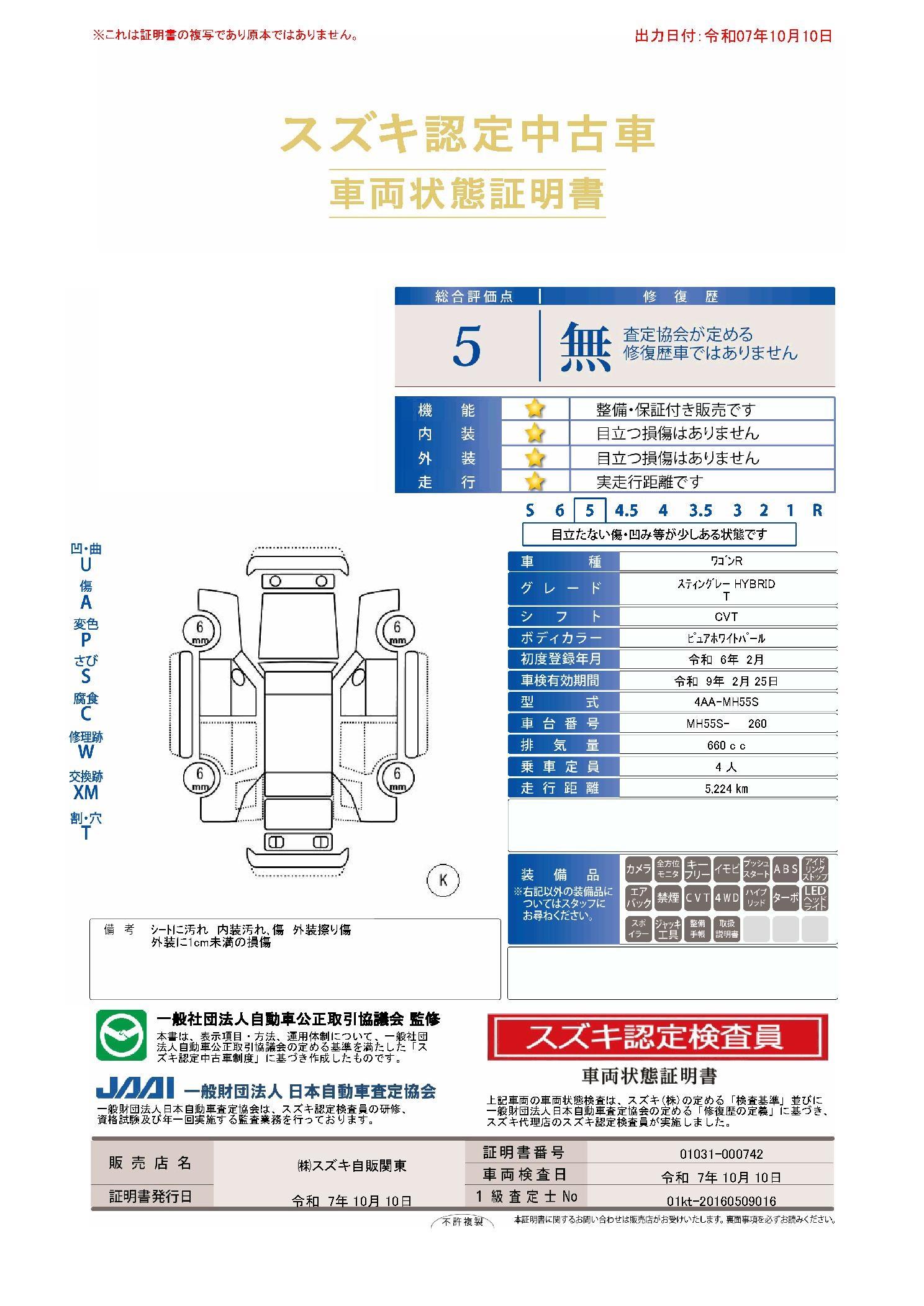車両保証(ワゴンRスティングレー ハイブリッドT:(株)スズキ自販関東 スズキアリーナ百合が原)