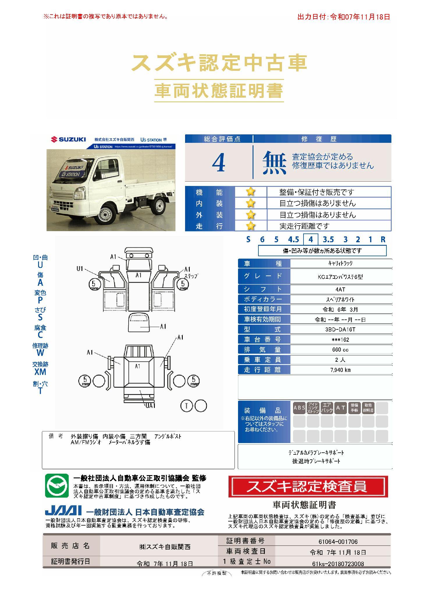 車両保証(キャリイトラック KCエアコン・パワステ:(株)スズキ自販関西 堺営業所)