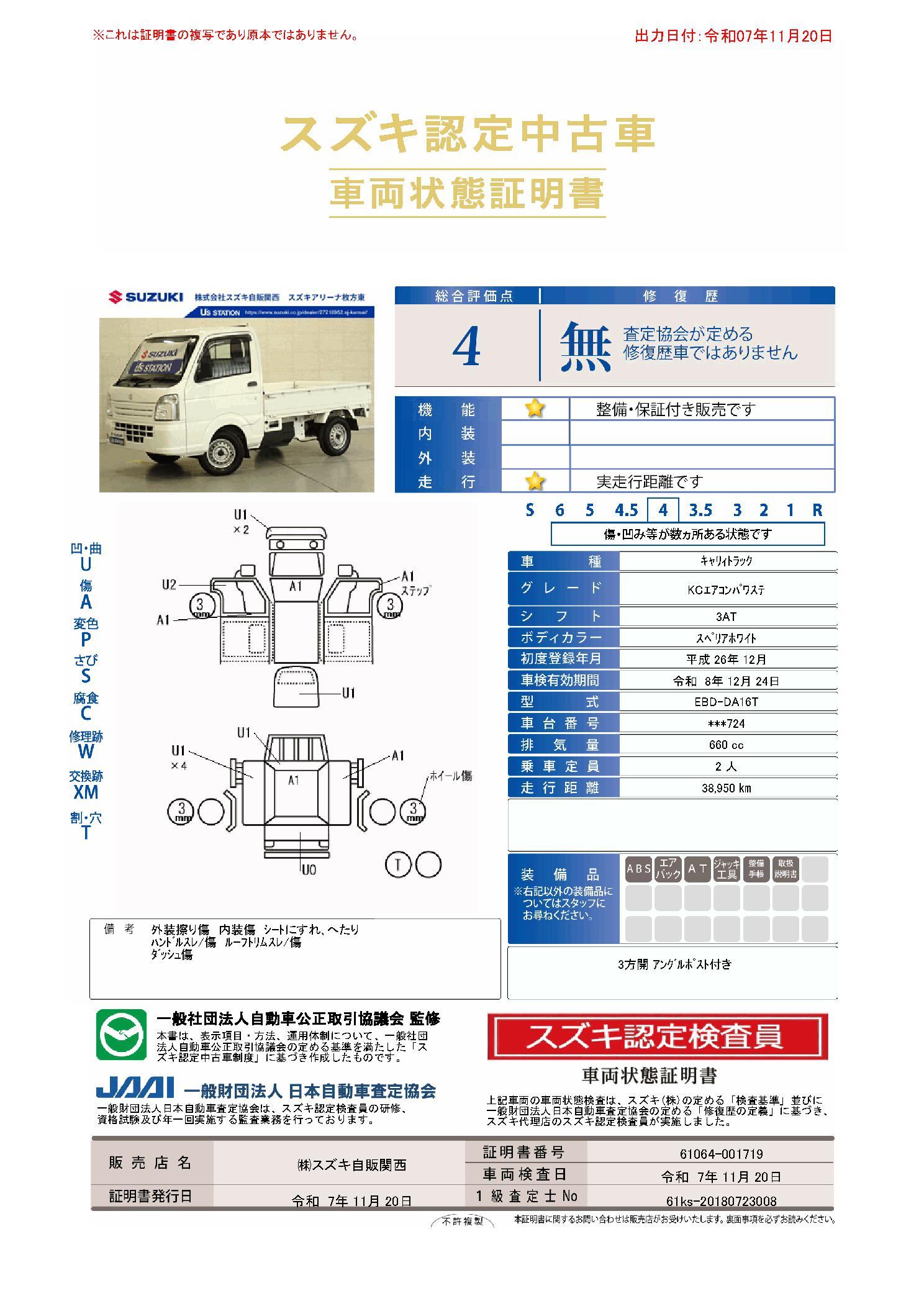 車両保証(キャリイトラック KCエアコン・パワステ:(株)スズキ自販関西 スズキアリーナ枚方東/U’s STATION枚方)