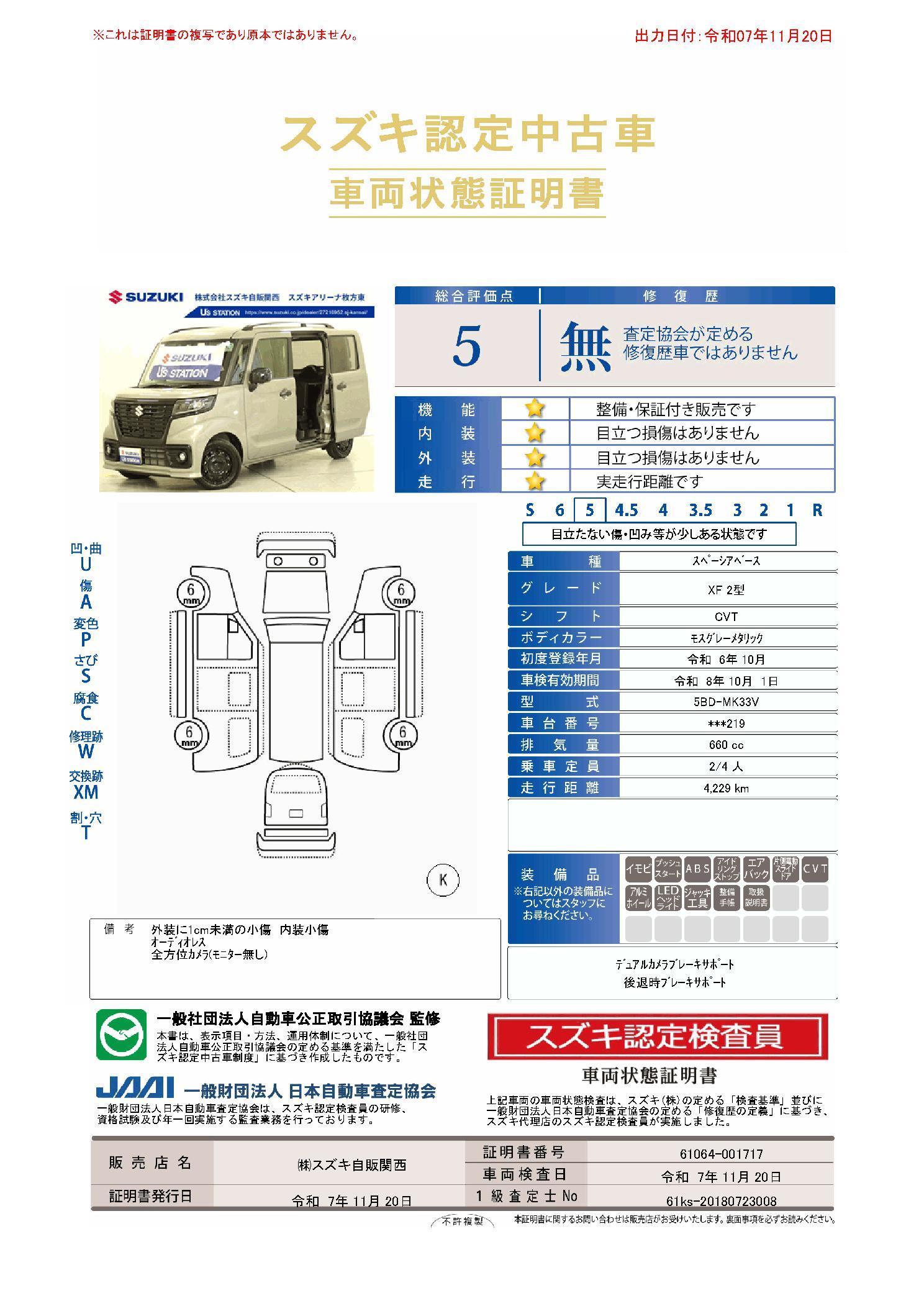 車両保証(スペーシアベース XF:(株)スズキ自販関西 スズキアリーナ枚方東/U’s STATION枚方)