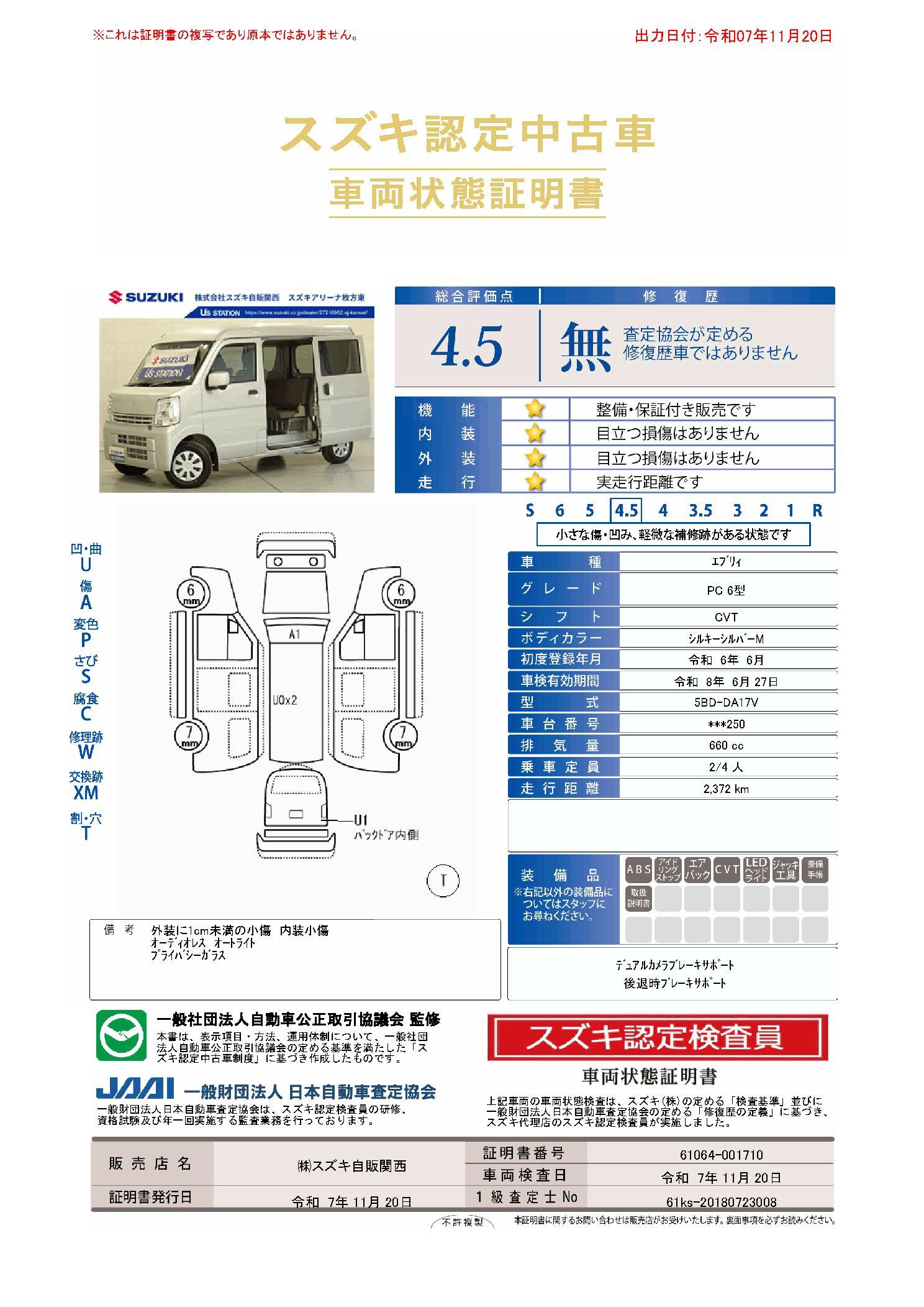 車両保証(エブリイ PC:(株)スズキ自販関西 スズキアリーナ枚方東/U’s STATION枚方)