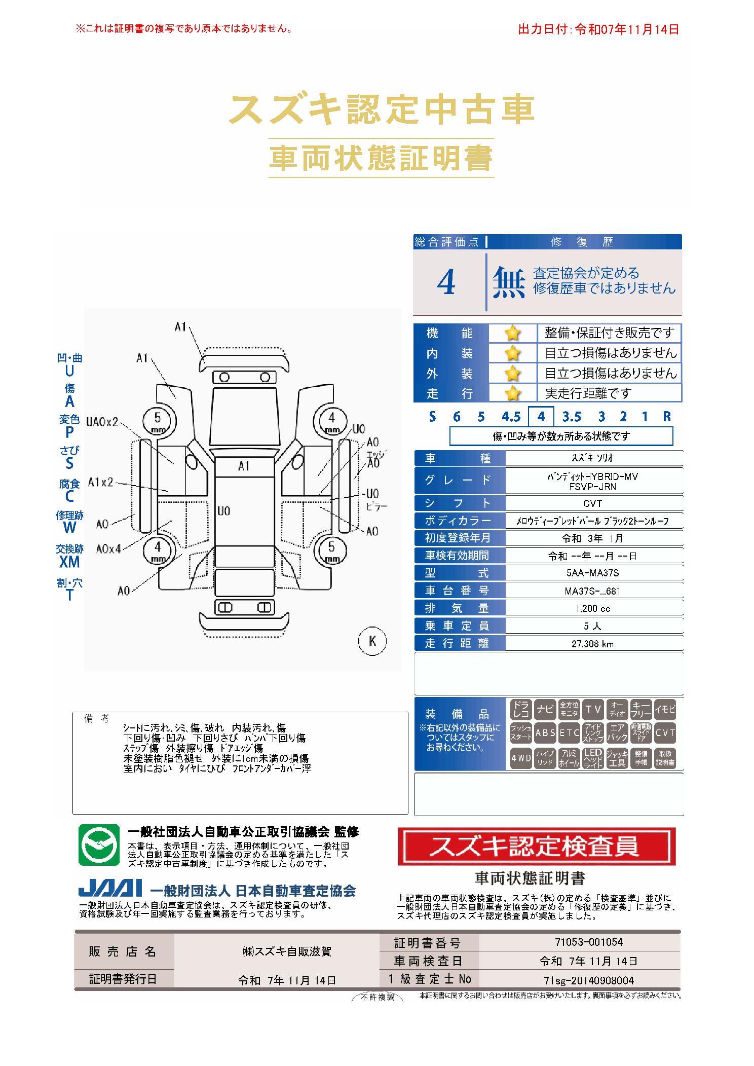 | 車両状態評価書 | ※クリックすると開きます![]() |