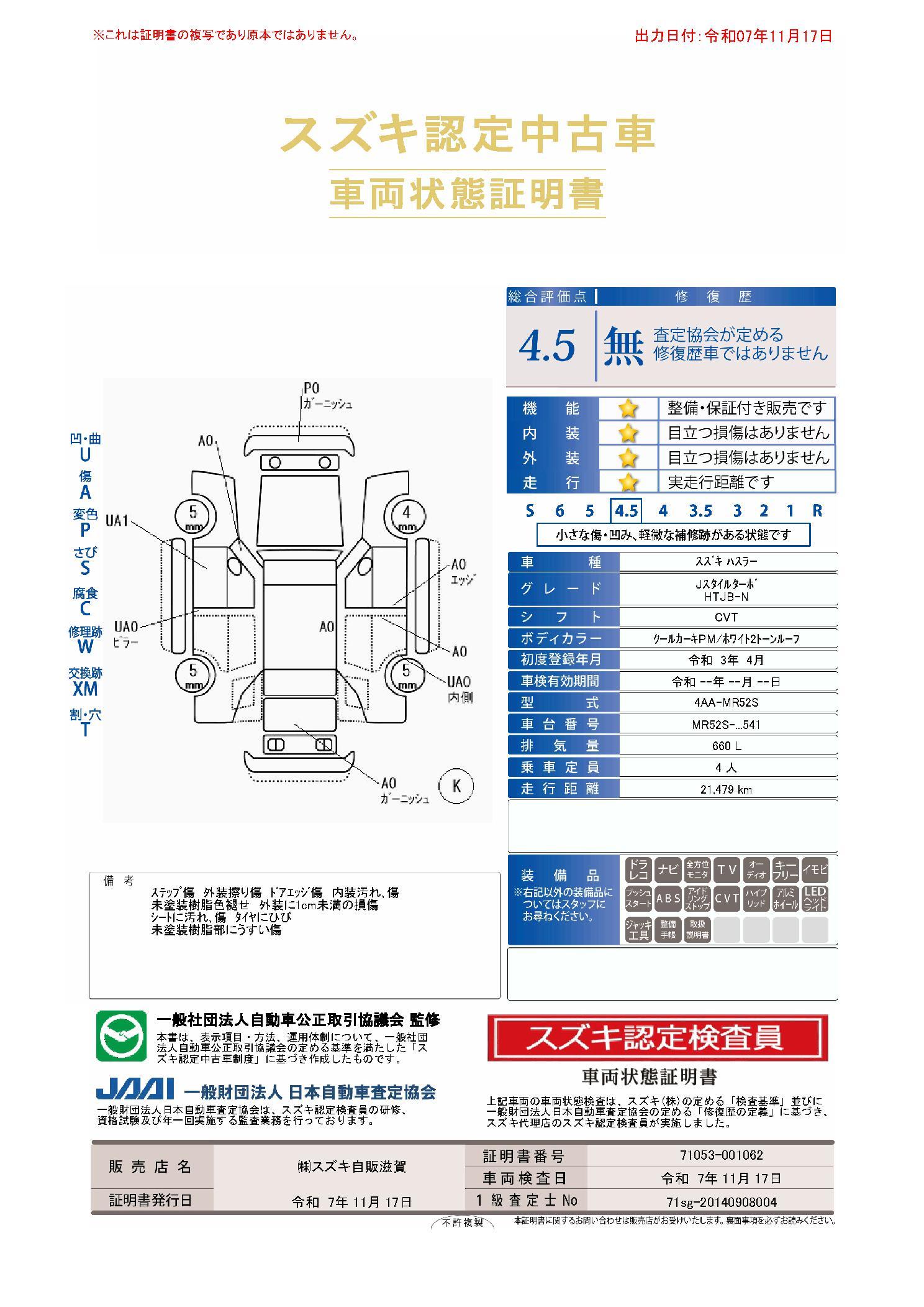 | 車両状態評価書 | ※クリックすると開きます![]() |